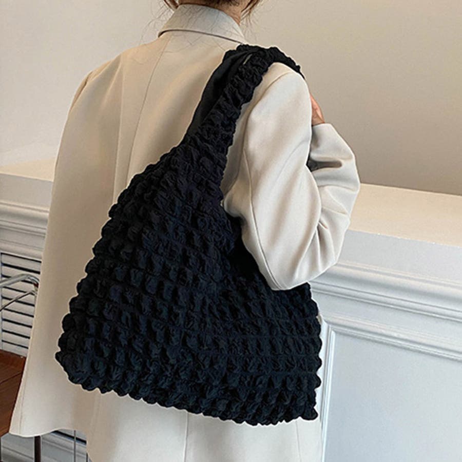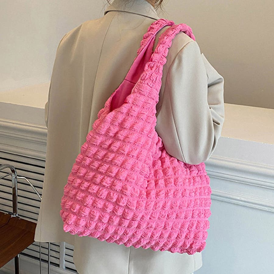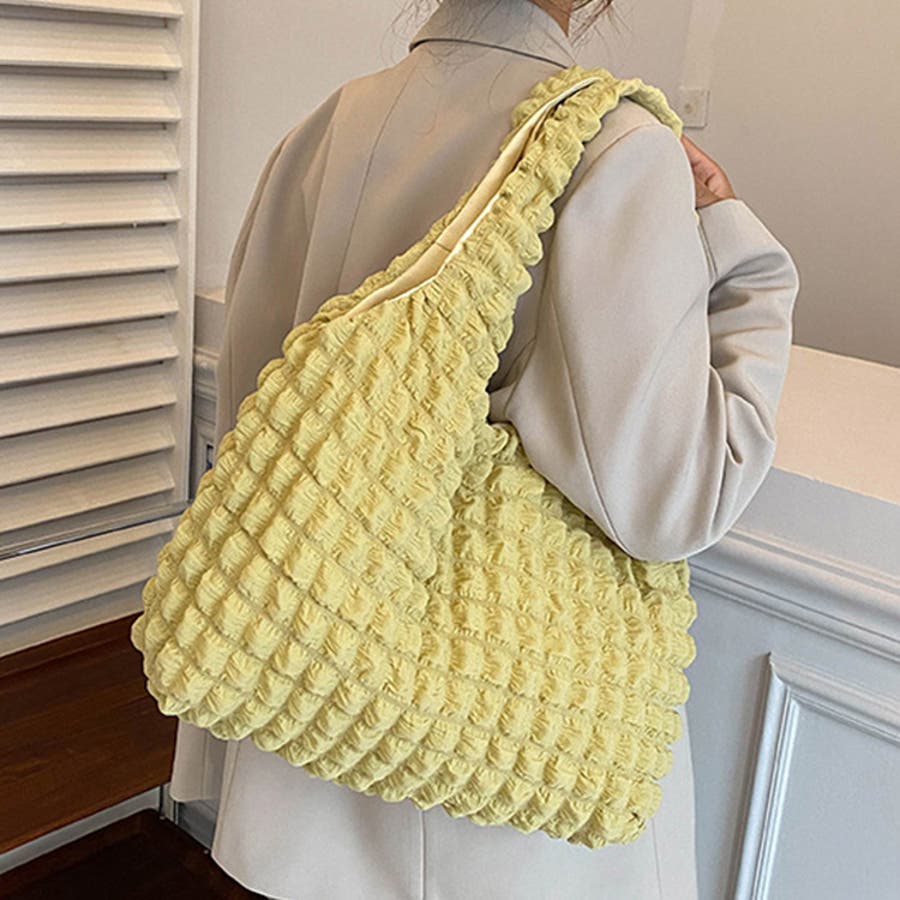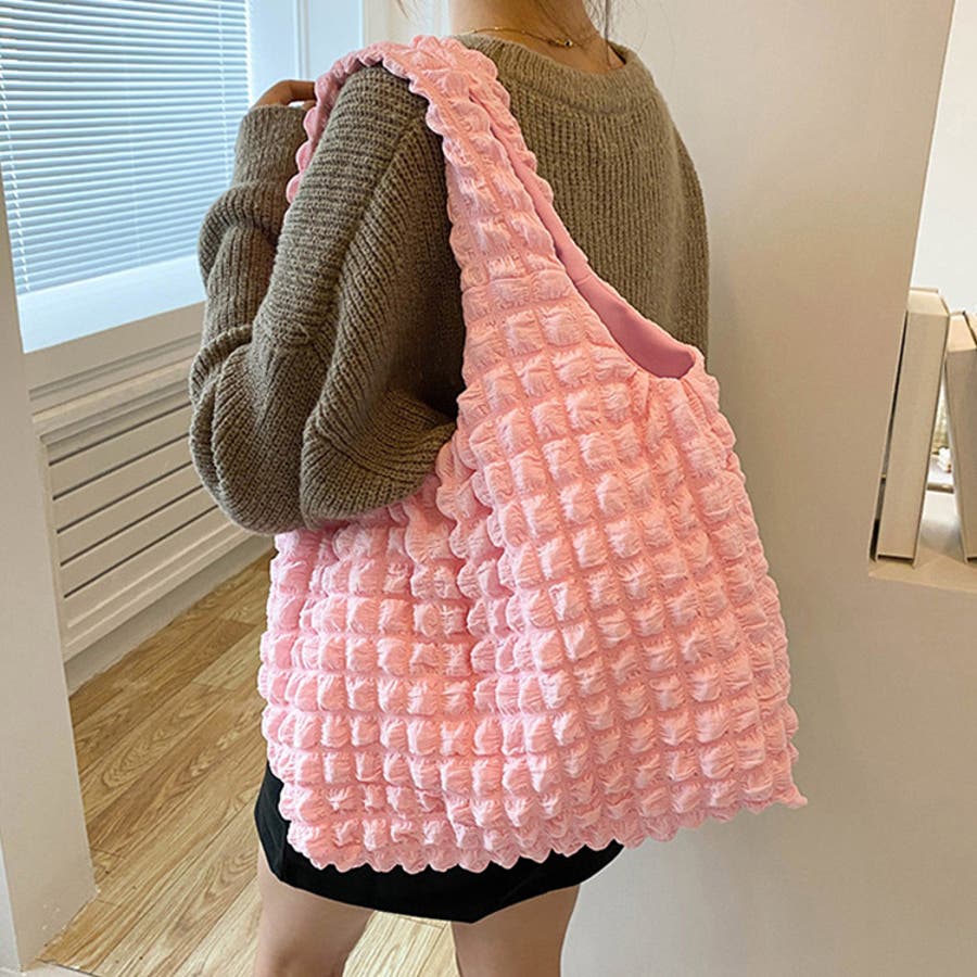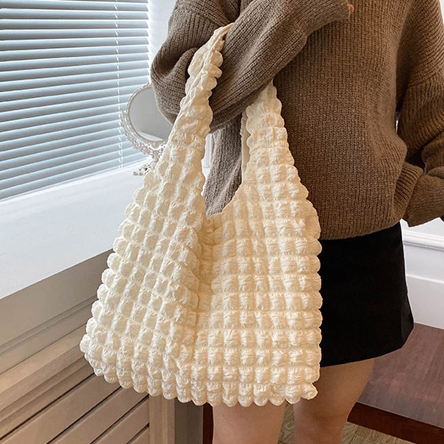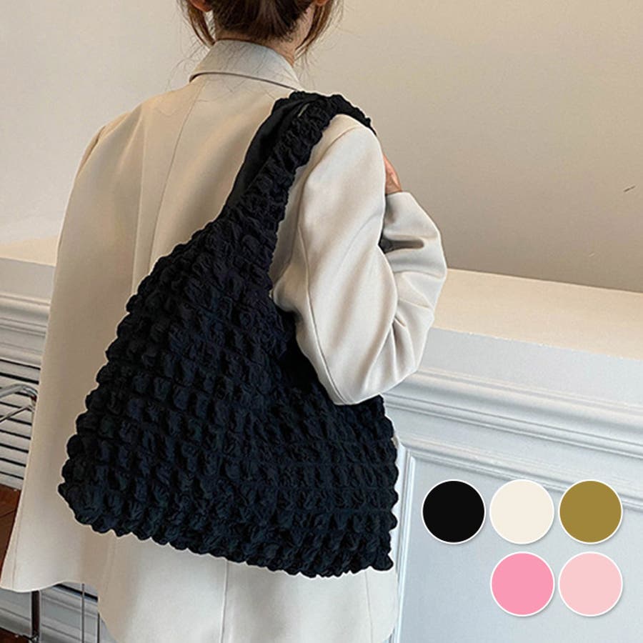 流行りのポコポコ生地で内側はしっかりした裏地がついてます。A4サイズの書類やタブレットも入り仕事バッグとして活用でき買って良かったです