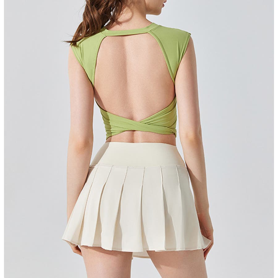 デザイン性のあるプリーツで、ワンランクアップしたフィットネスコーデに。