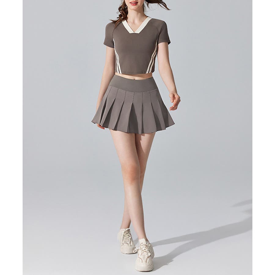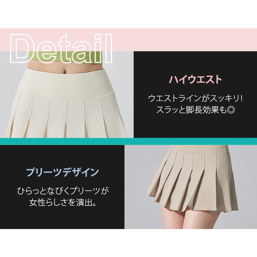 ハイウエストでボディラインをすっきり綺麗見せし、体を動かしやすいミニ丈のスカート。