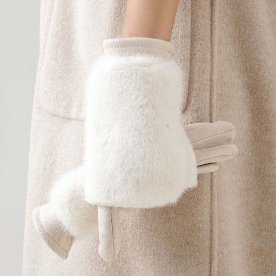 季節感たっぷりなスエード風生地&フェイクファーで大人の品を引き立てる。