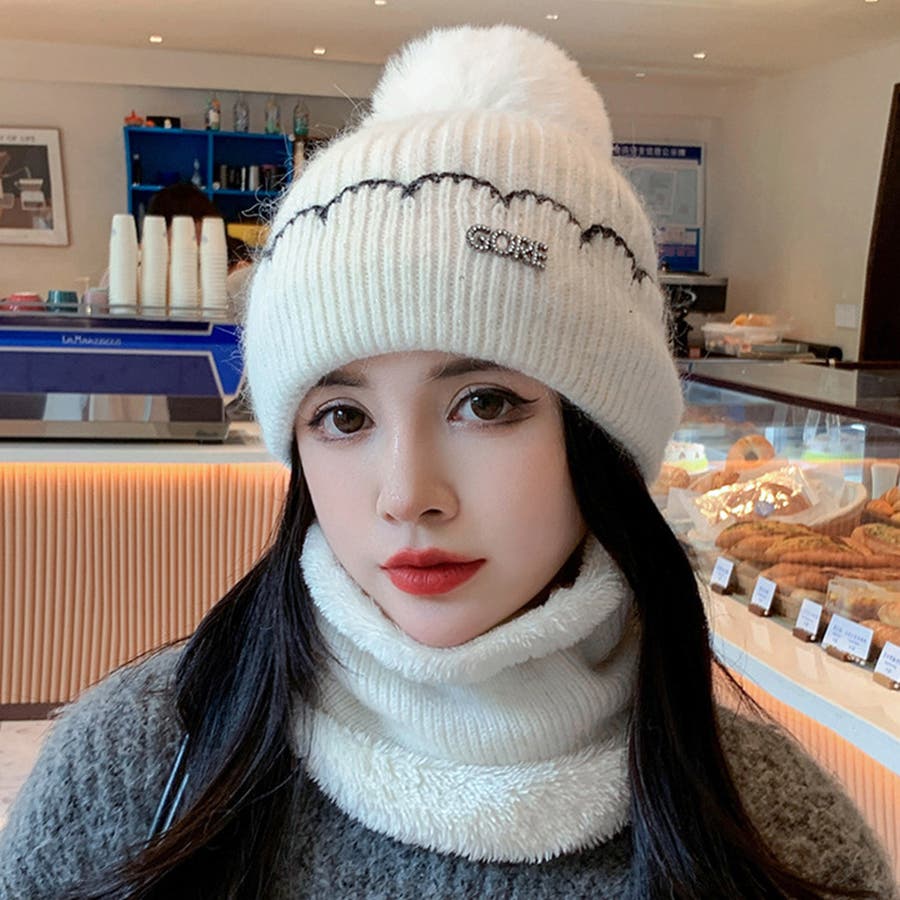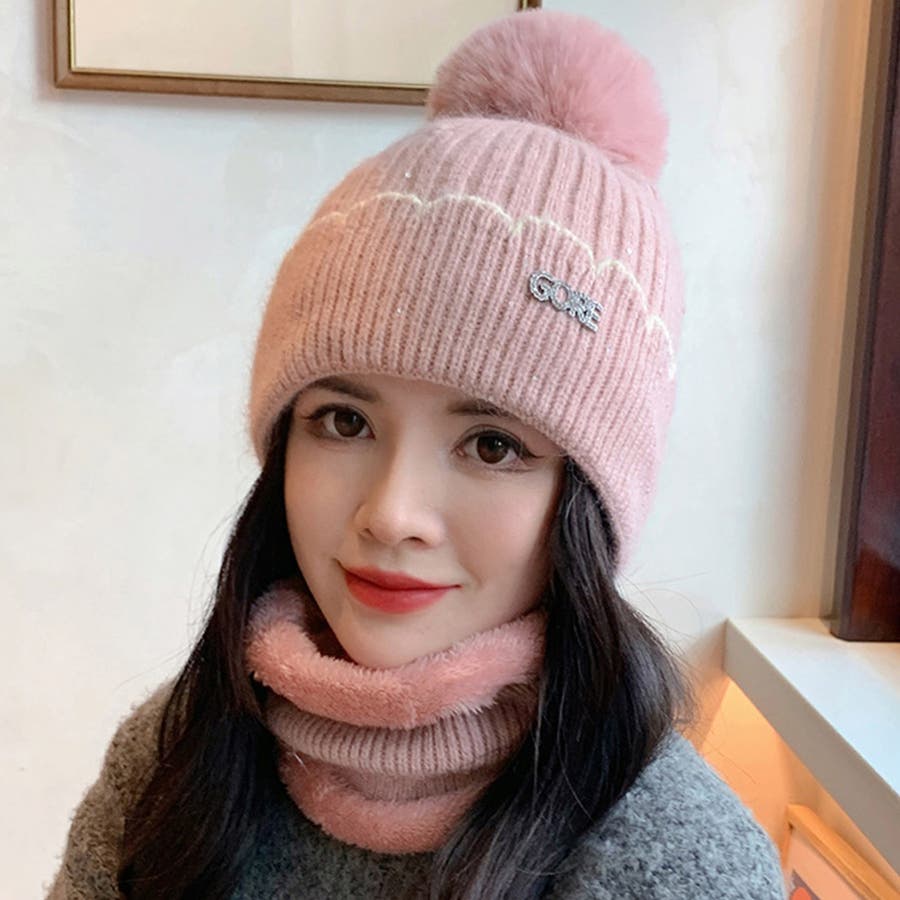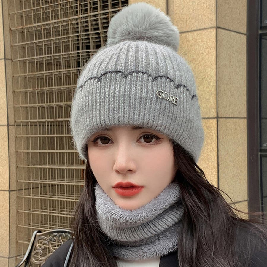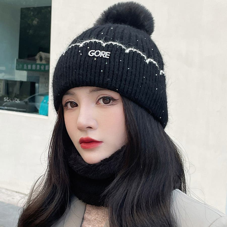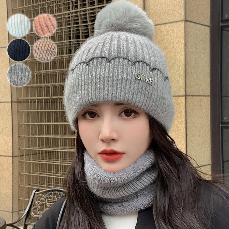 シンプルカラーで甘すぎず、程良いガーリーさをプラスできるニット帽&スヌードです。