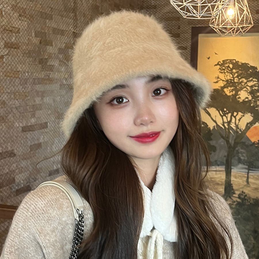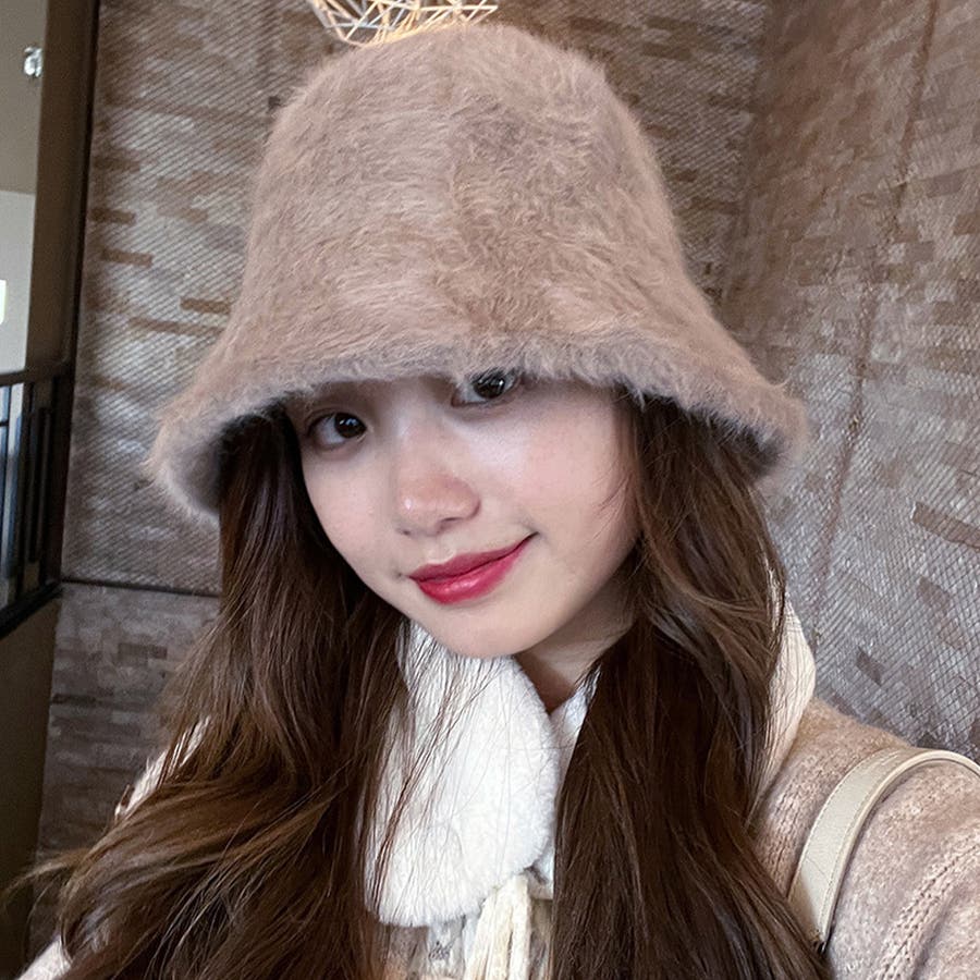 ふわふわ感がシーズンムード漂う、大人可愛いバケットハット。