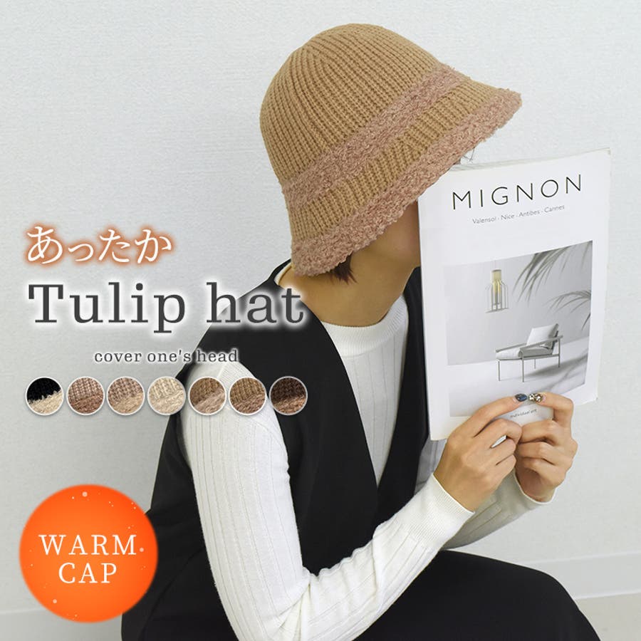 寒い季節にオススメなニット生地のチューリップハット。