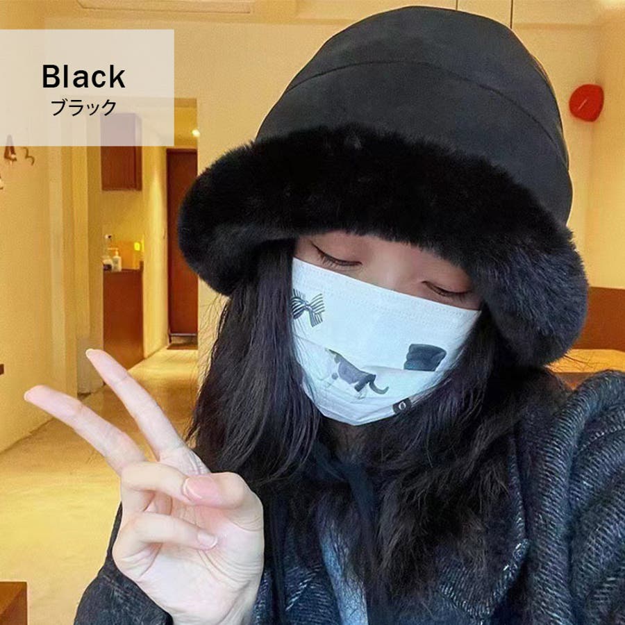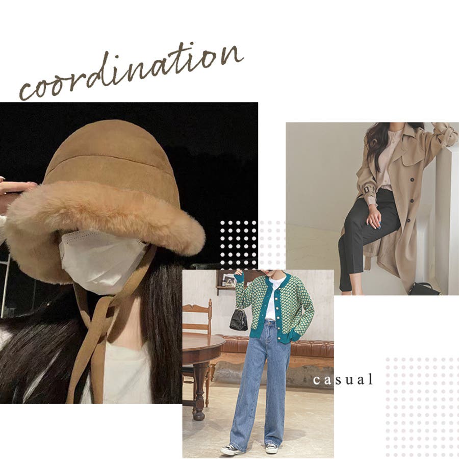 裏地はふわふわのボア素材で防寒もおしゃれも叶える万能バケットハット。