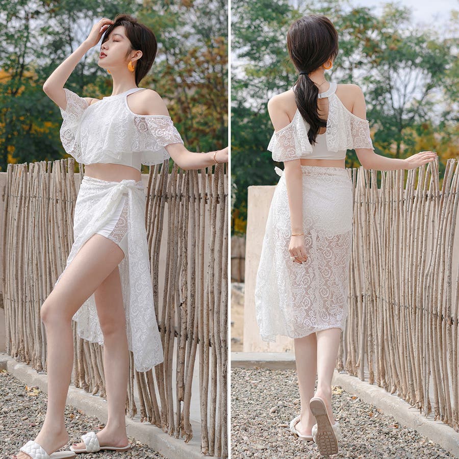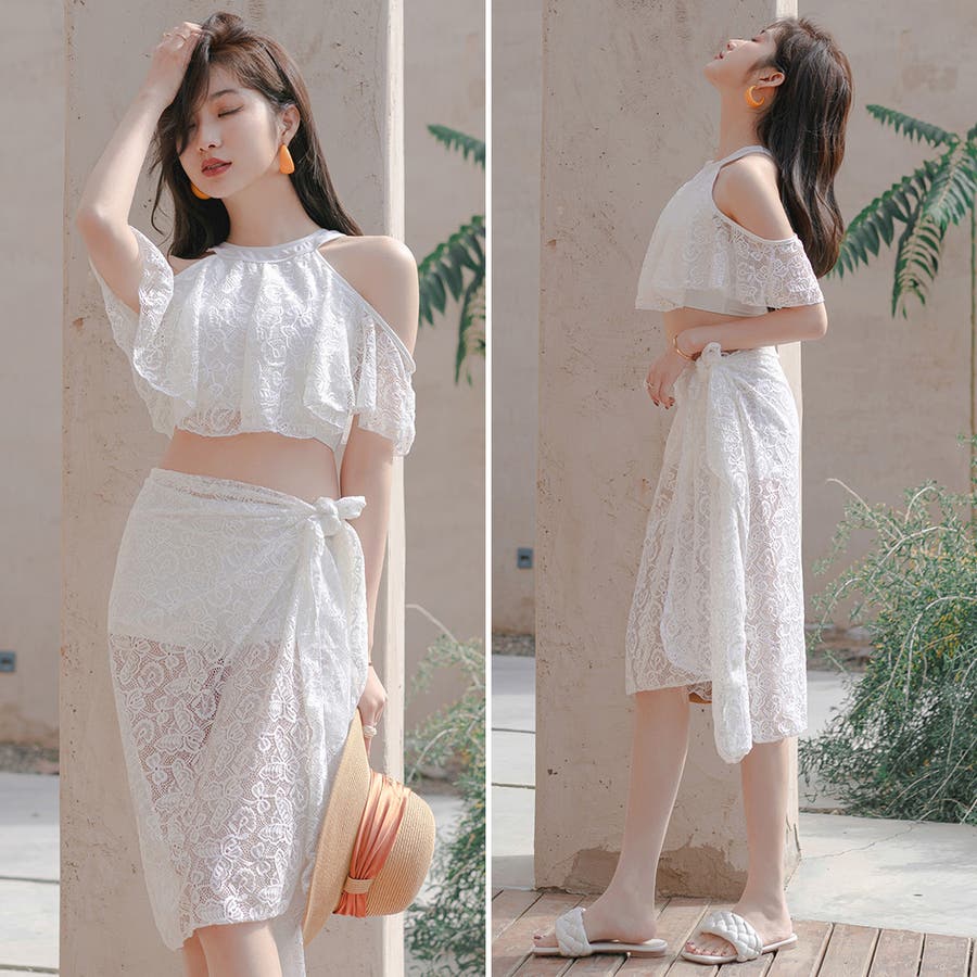 オフショルダービキニ+パレオ 3点セット