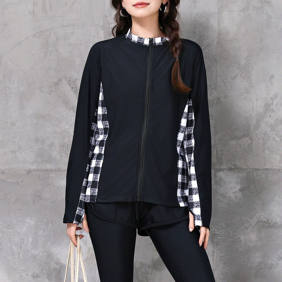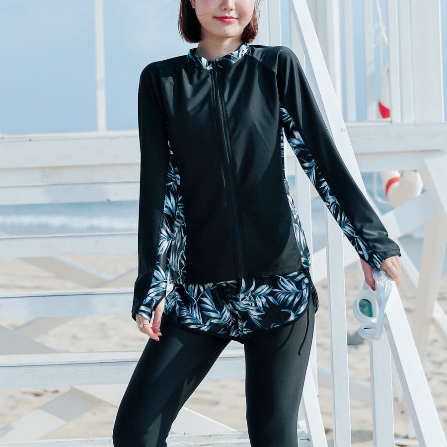 水着にラッシュガードを合わせて程よく肌見せさせるのも◎