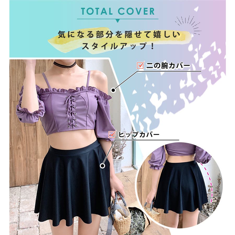 水着体型カバー オフショルダー 大きいサイズ