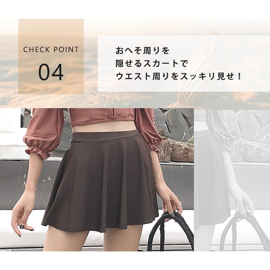 投稿日:2023.01.20165センチ45キロBです。サイズはぴったりでした。肩紐で長さを調節すれば鎖骨下まで布がくるので小胸を隠すことができます。スカートもヘソまで隠くれるのが良い。可愛い水着で大変満足しています。