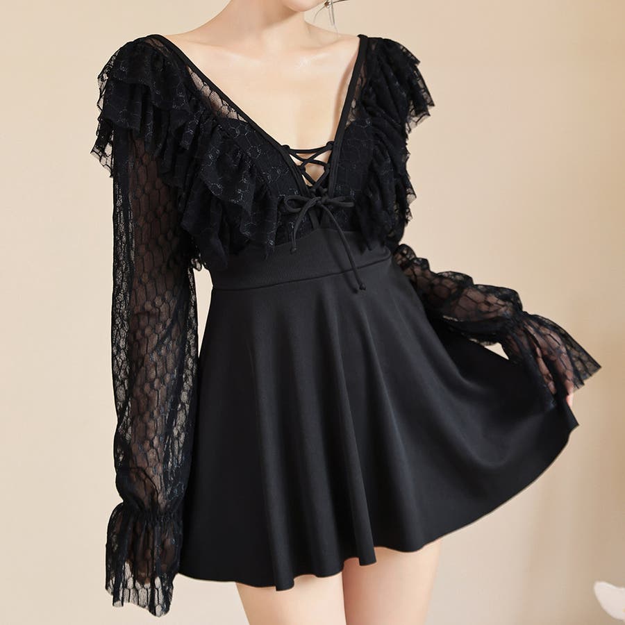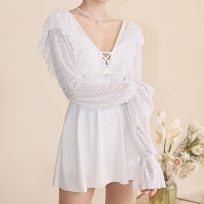 レースのボレロ風デザインがオシャレなワンピ水着。