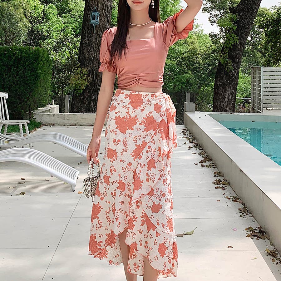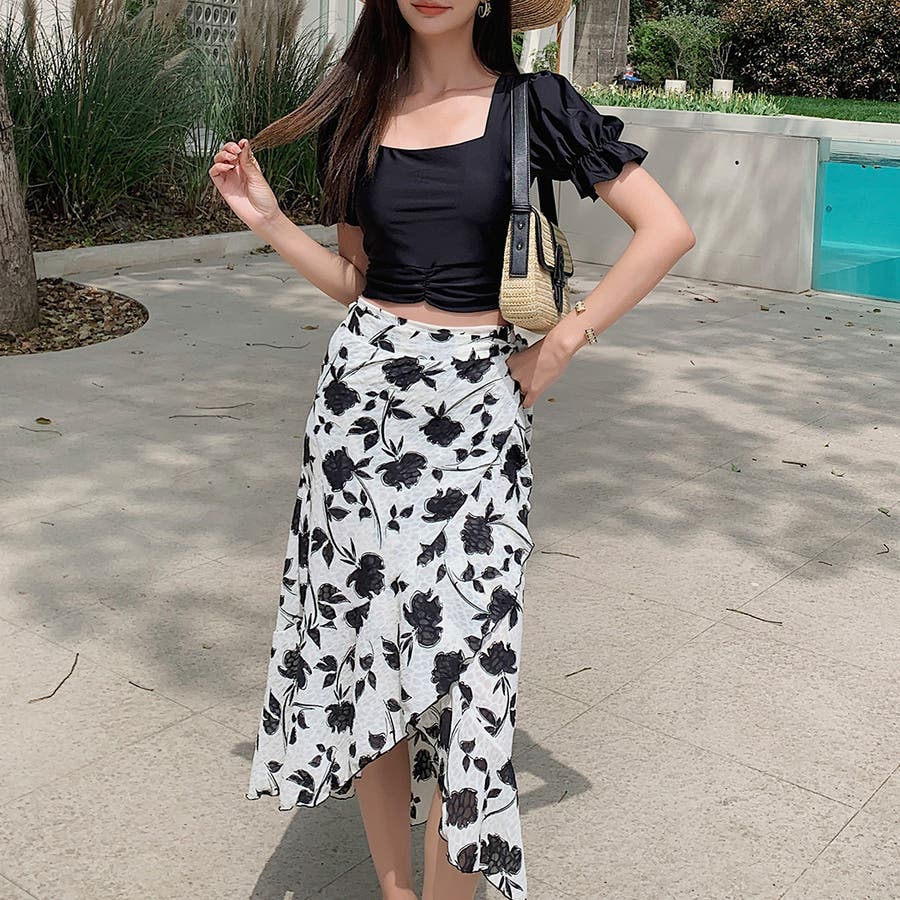 フリル×ボタニカル柄がお洒落なパレオ付き。