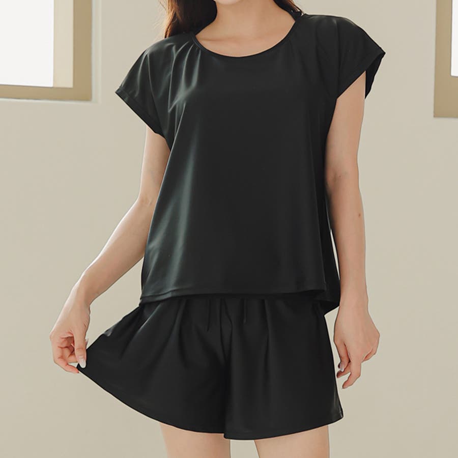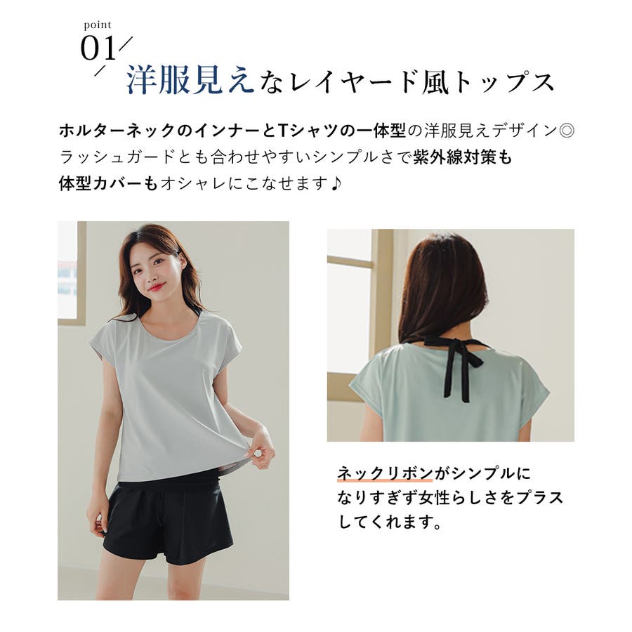 体型カバーも紫外線対策もこなせる2点セット水着です。