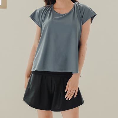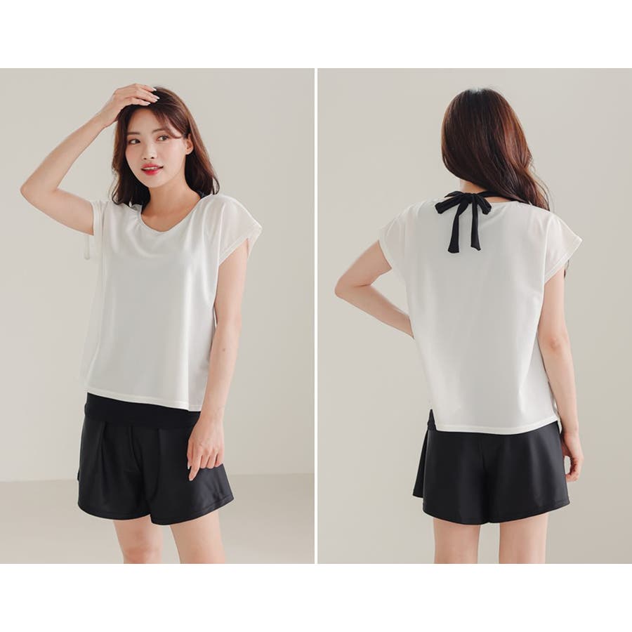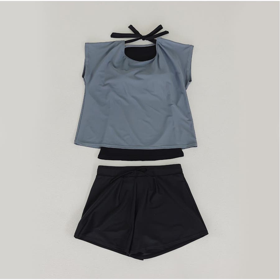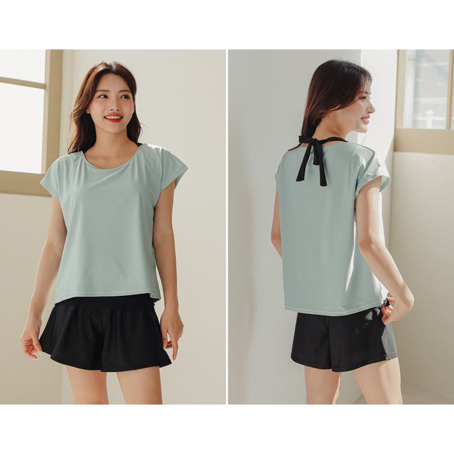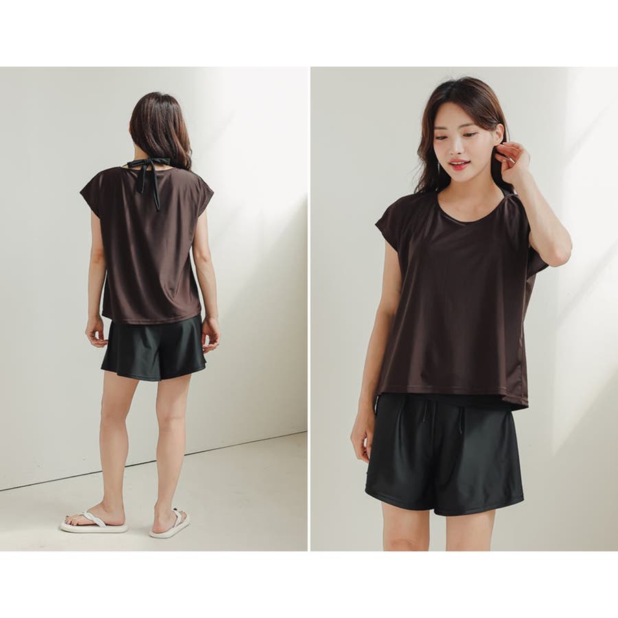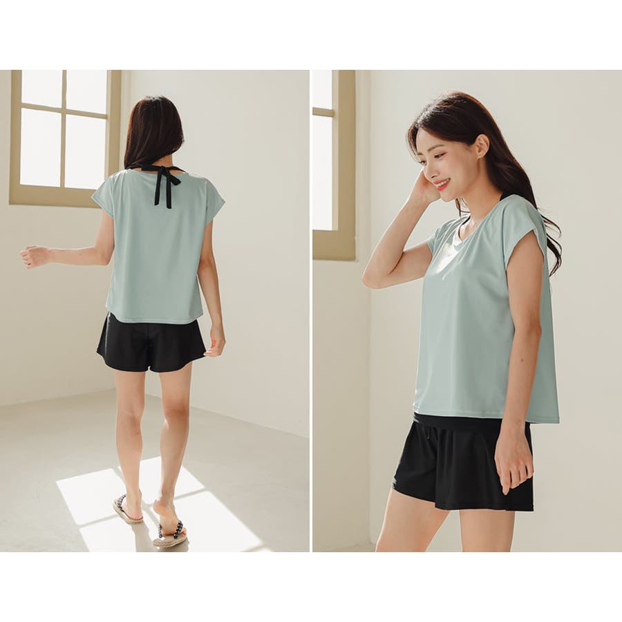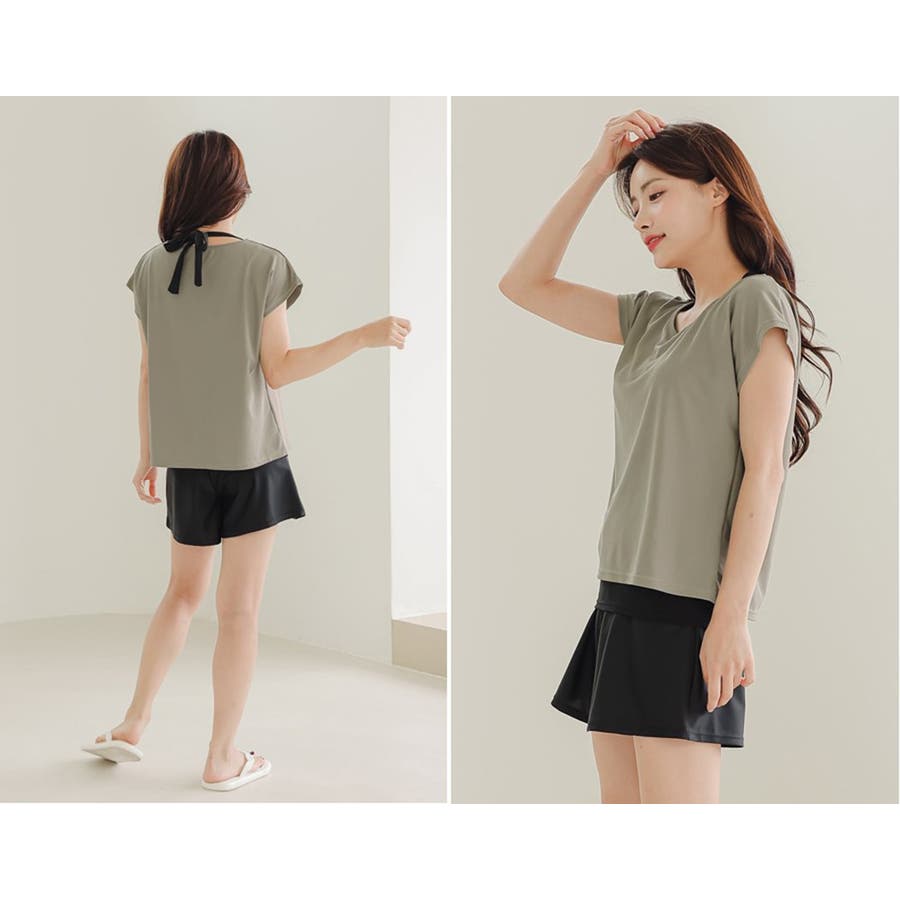 ラッシュガードとも合わせやすいシンプルさで紫外線対策も体型カバーもオシャレにこなせます♪