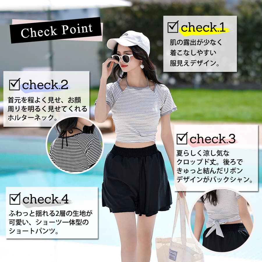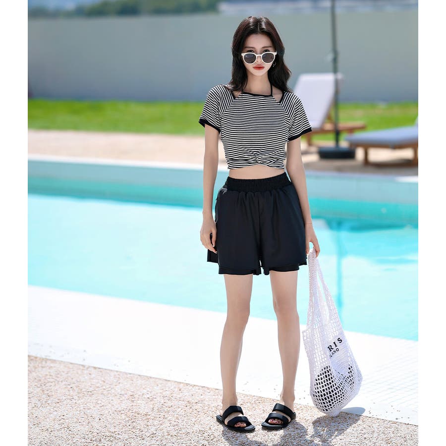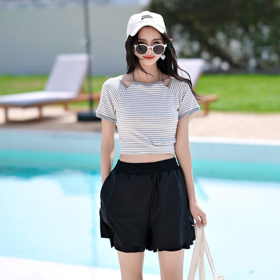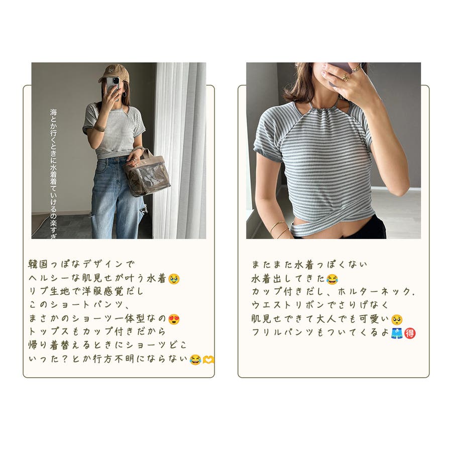 まるでお洋服のようなリブデザインの水着生地を使用。