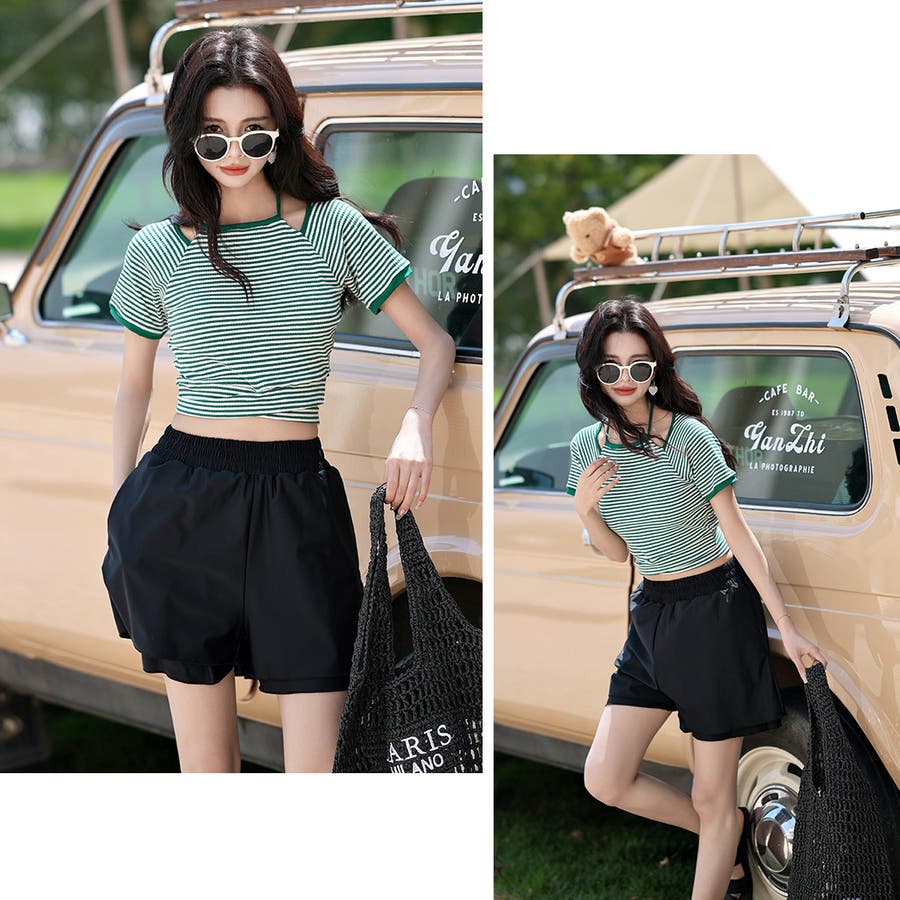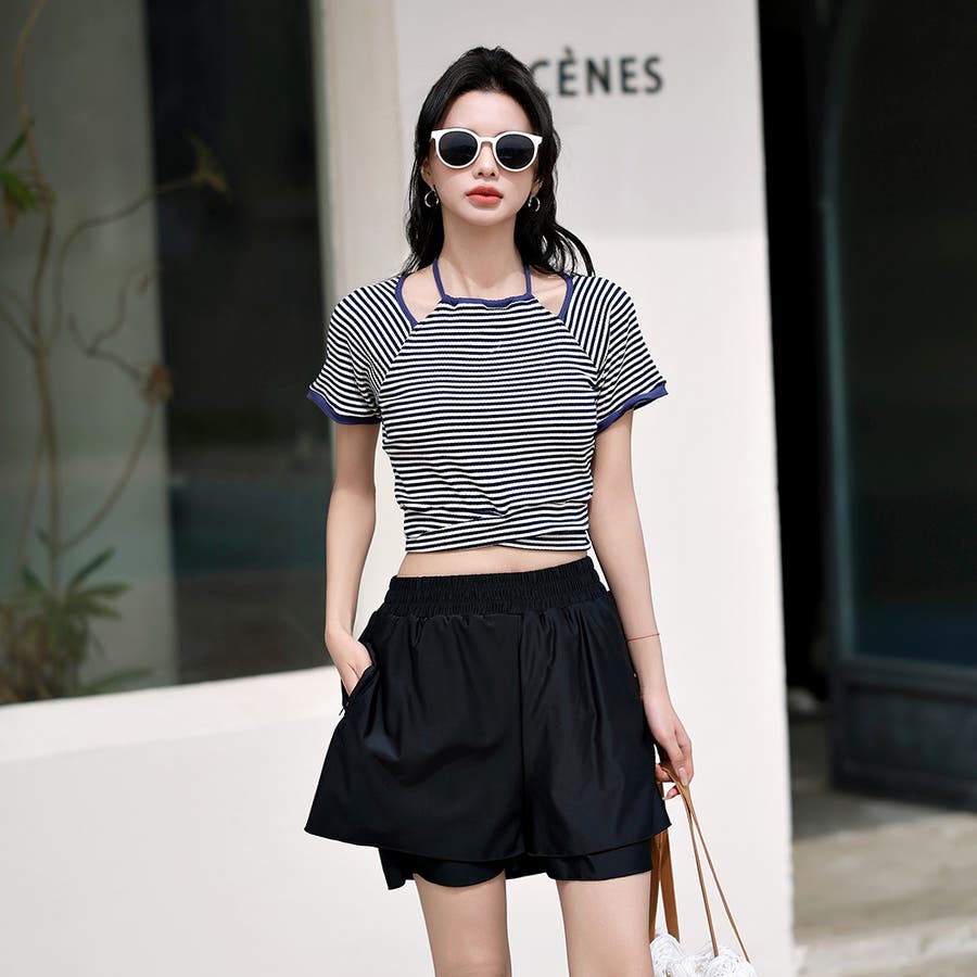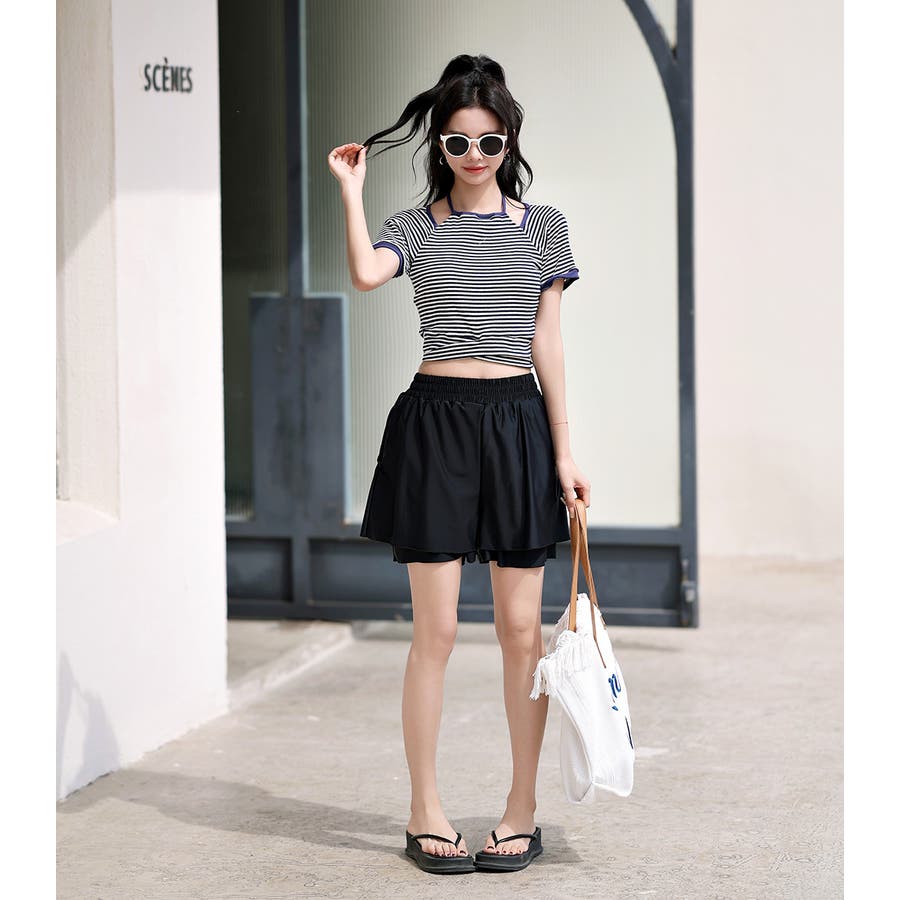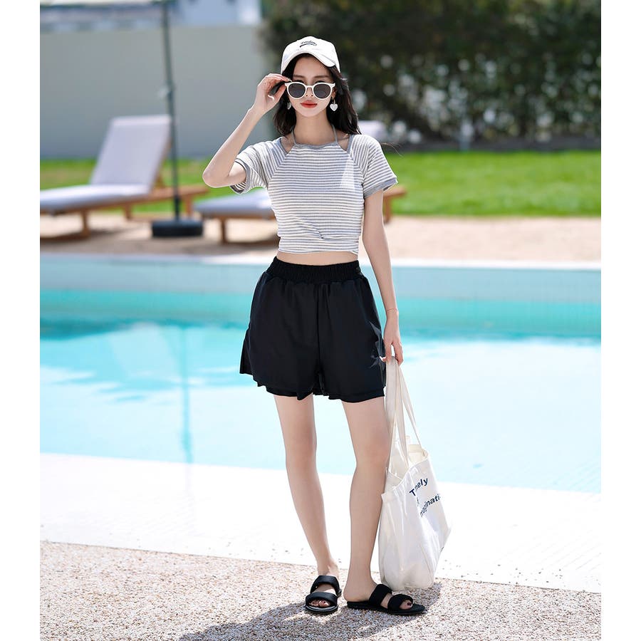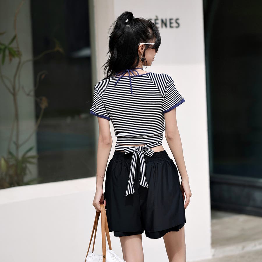 まるでお洋服のようなリブデザインの水着生地を使用。
