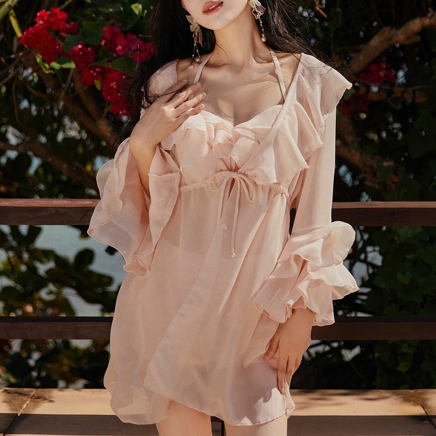 フェミニンなムード漂う露出抑えめなビキニスタイル!