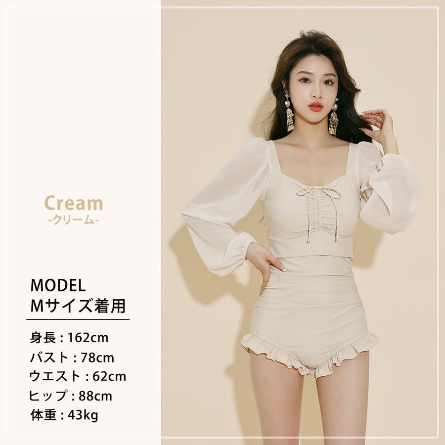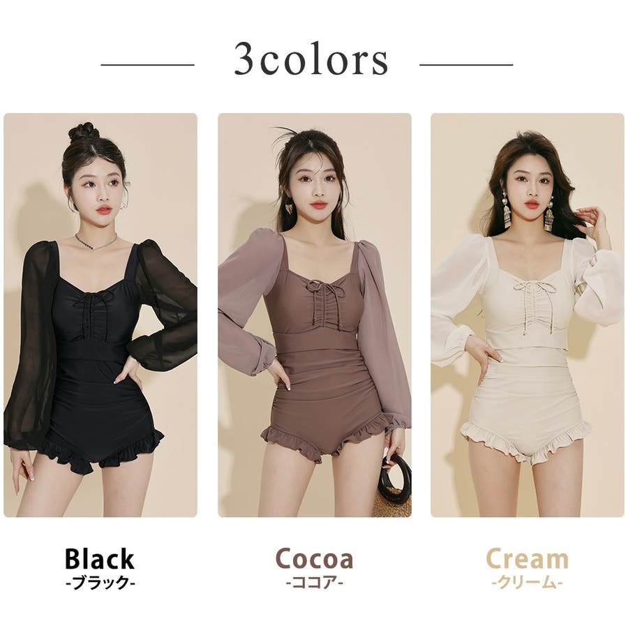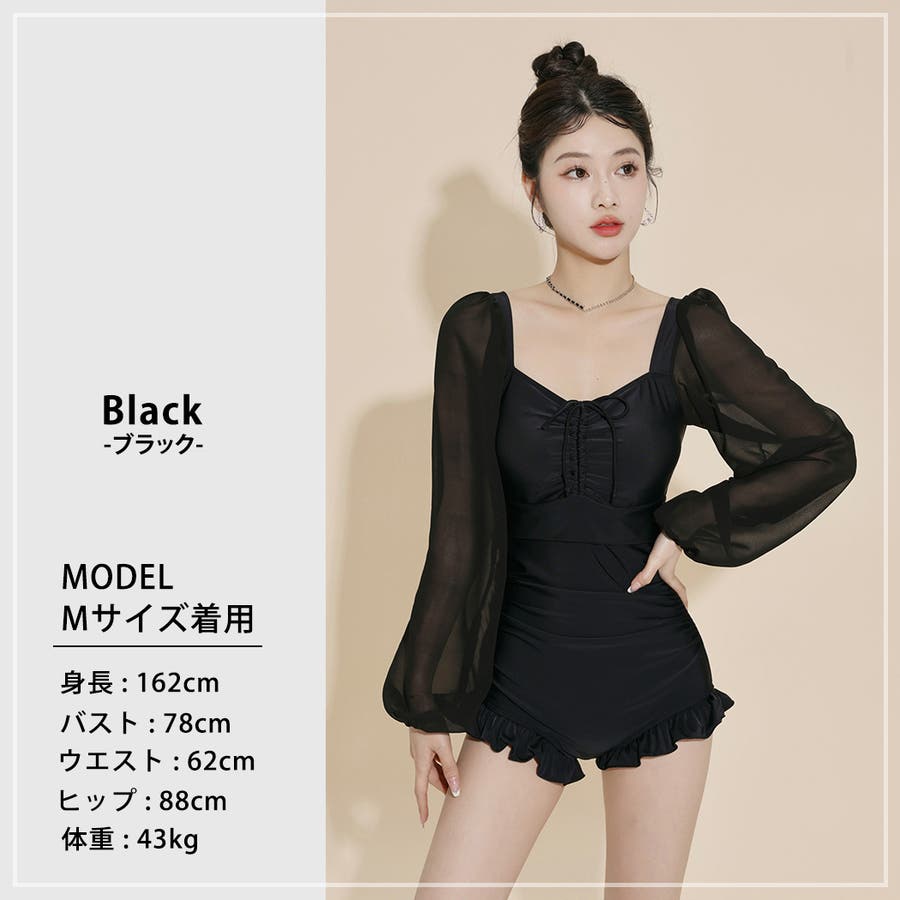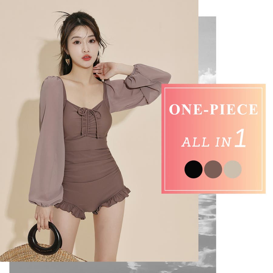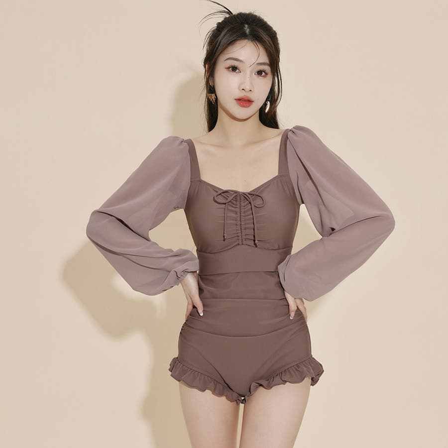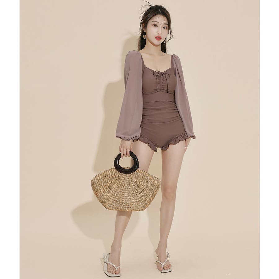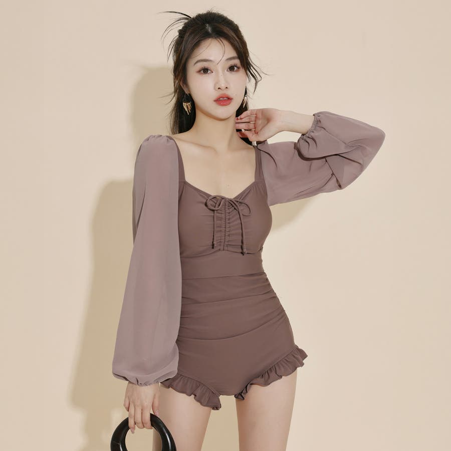 涼しげなシースルー袖やリボンなどトレンドを盛り込んだワンピ水着。