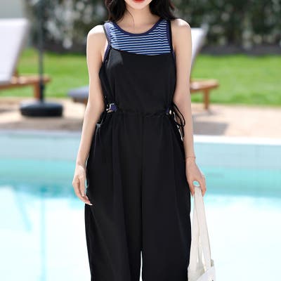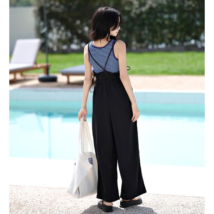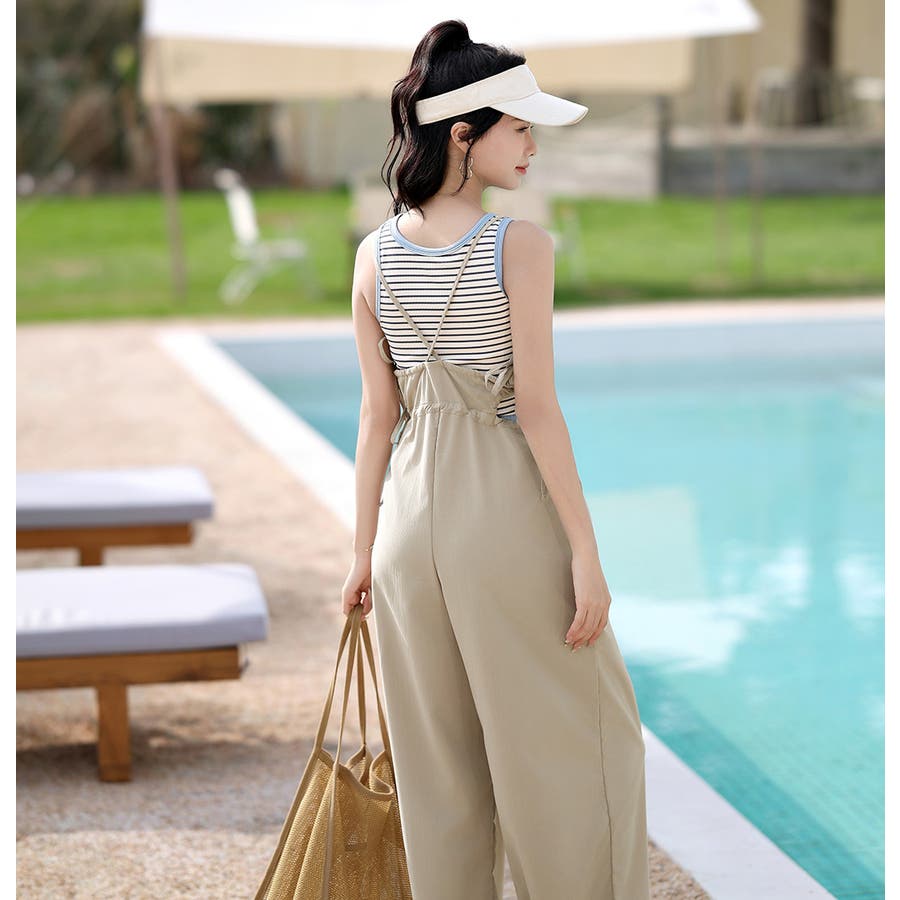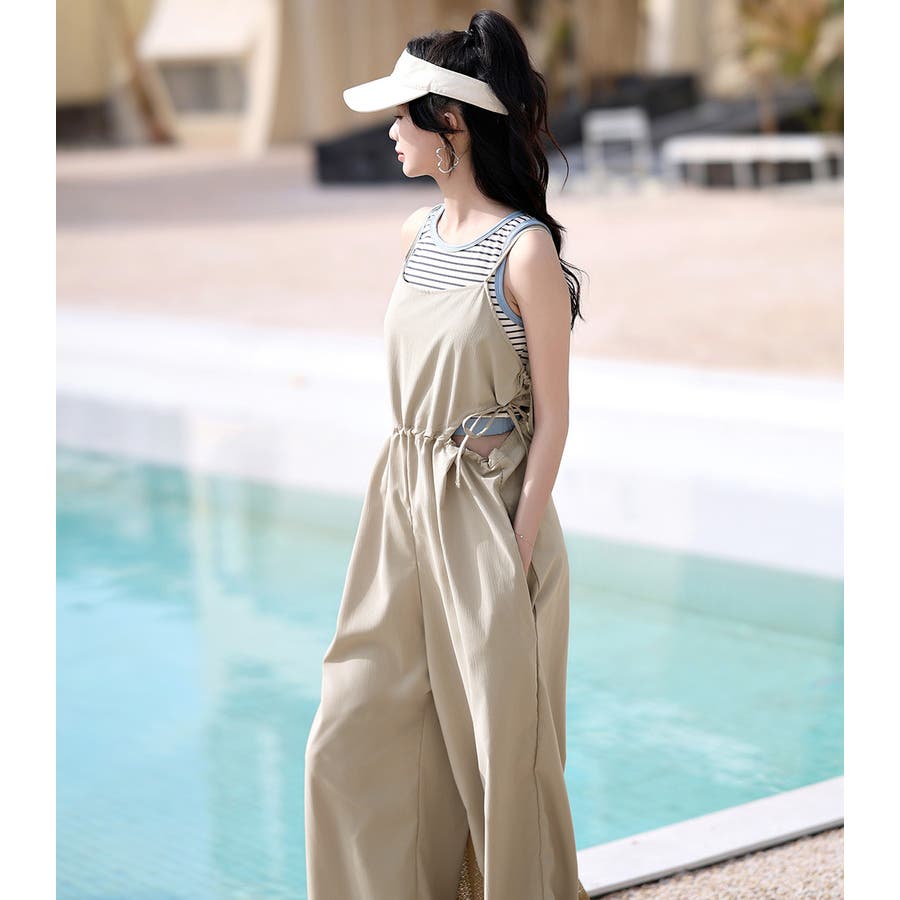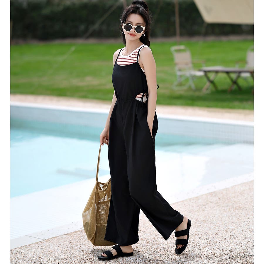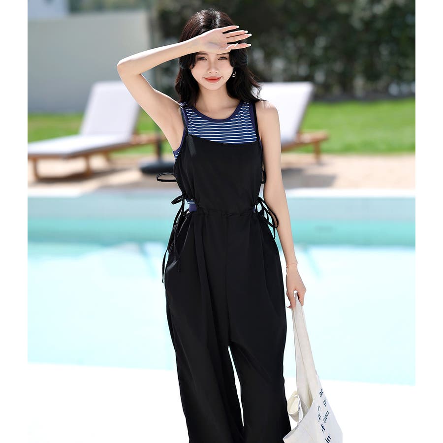 服見えするのにそのまま水にも入れて体型カバーができるサロペット水着!