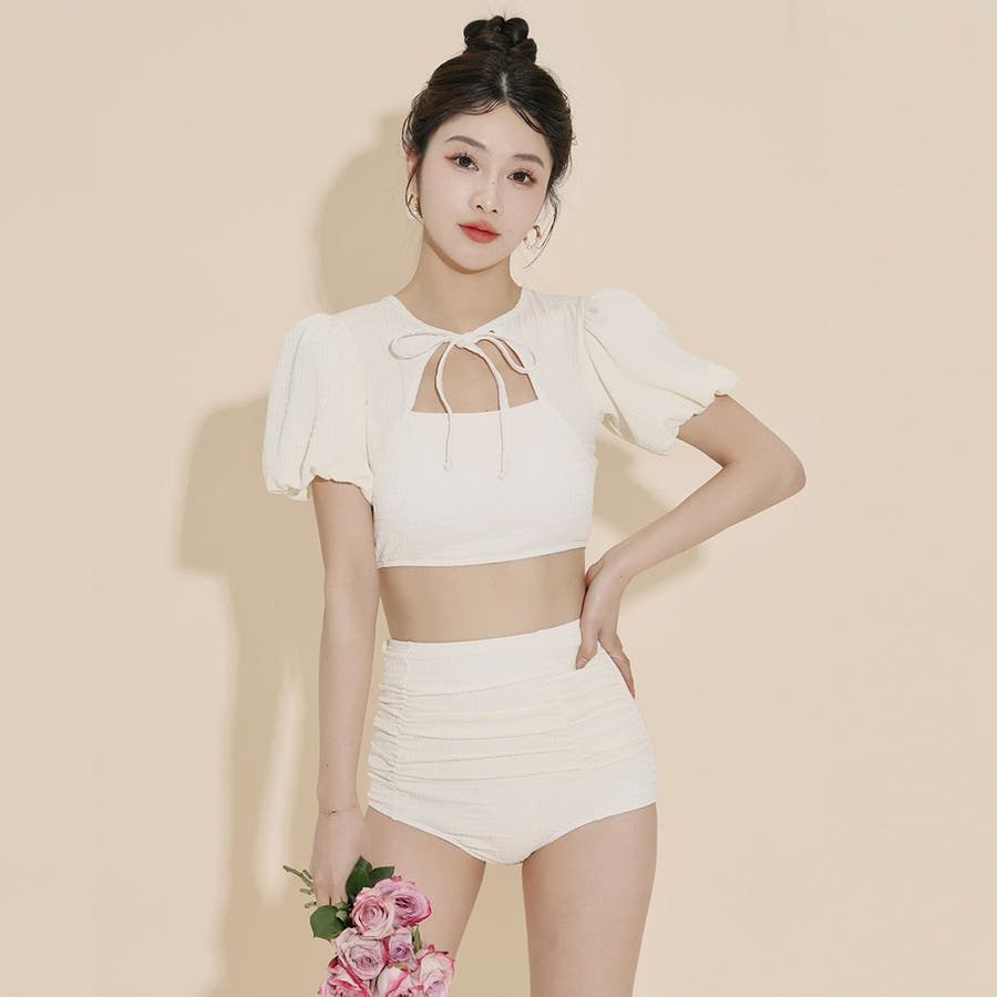 パフスリーブ×リボンが大人ガーリーにキマるブラ一体型トップス