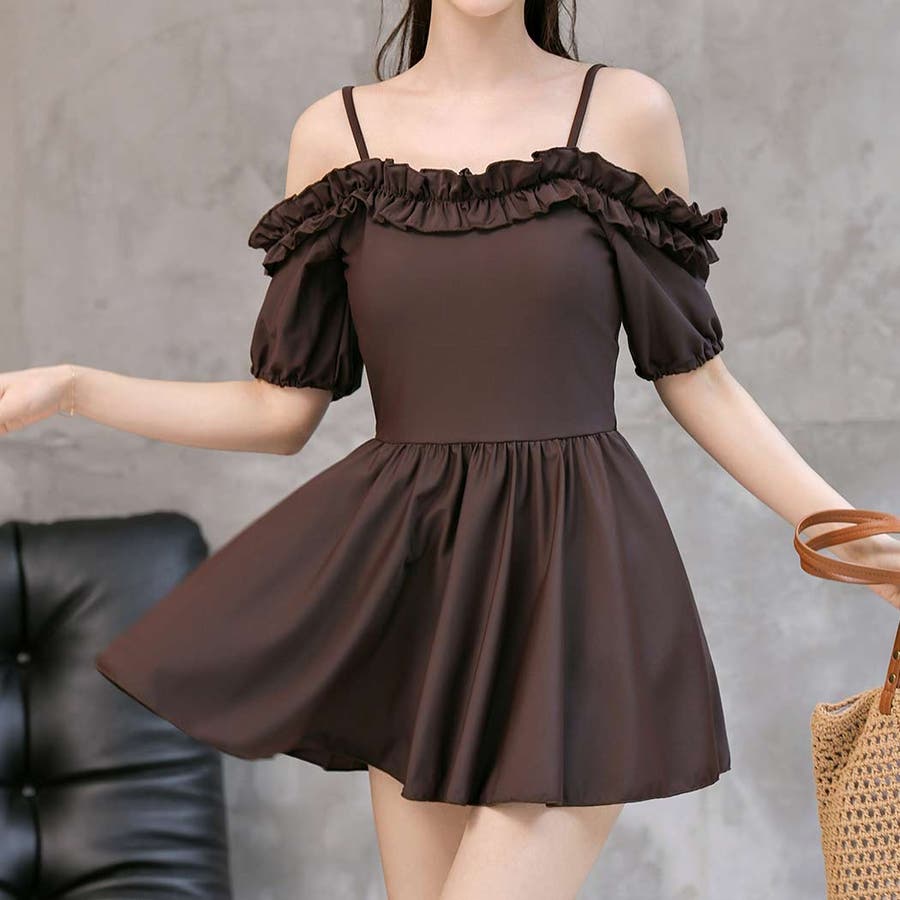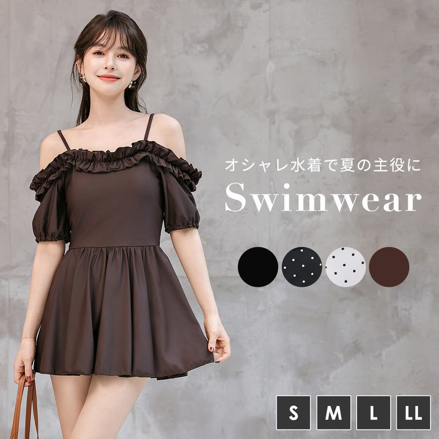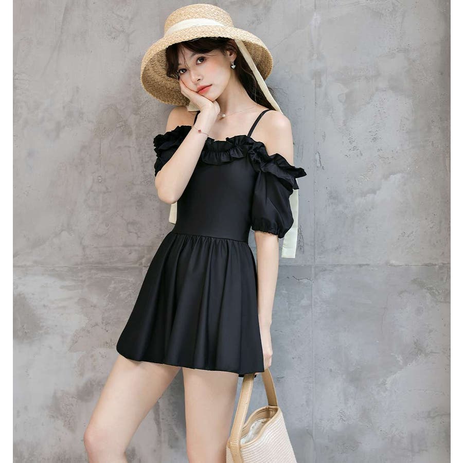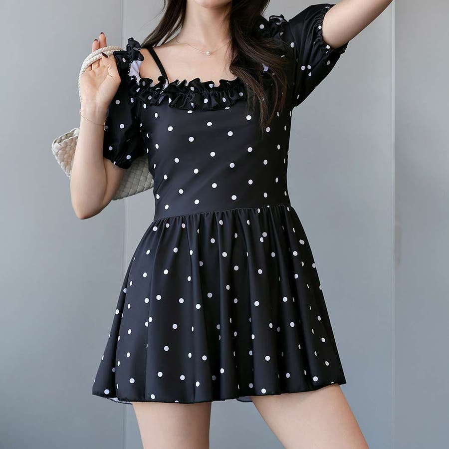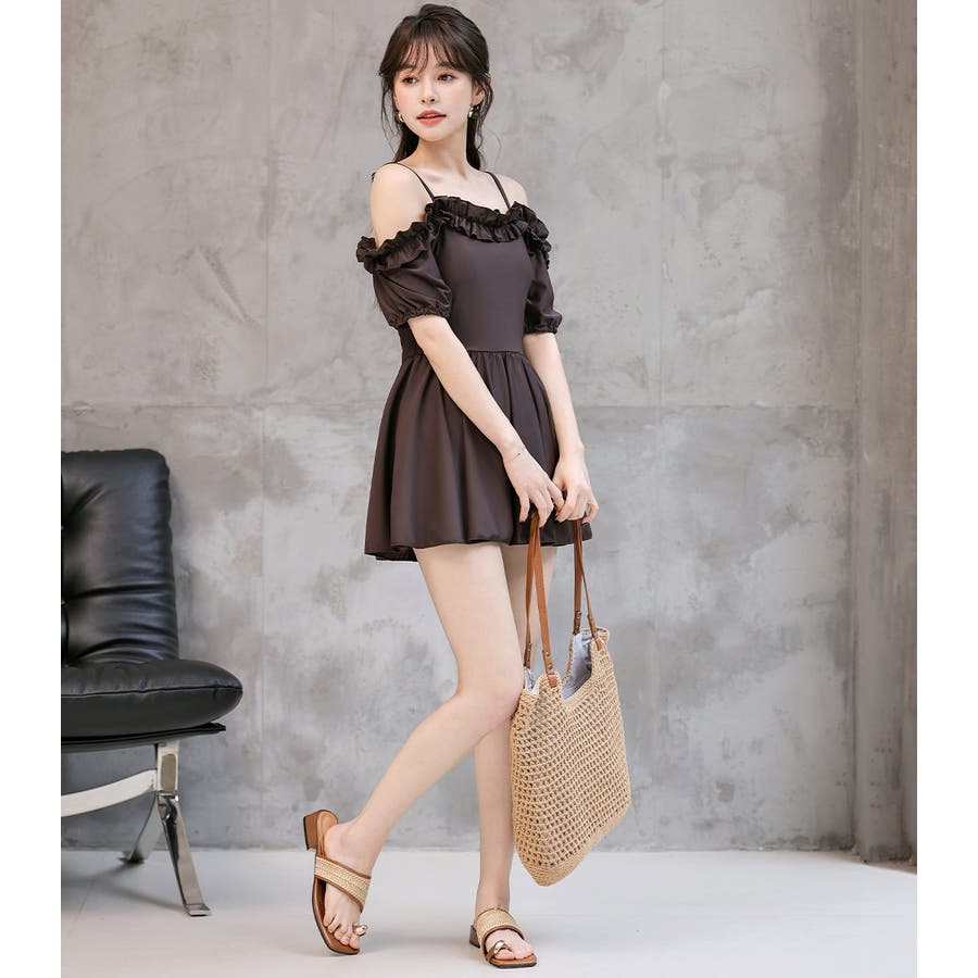 ビーチやプールでも映える大人フェミニンな2点セットフリルワンピ水着