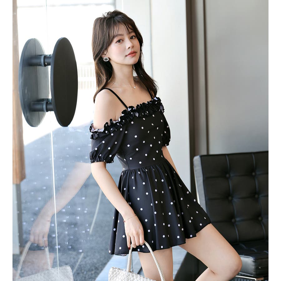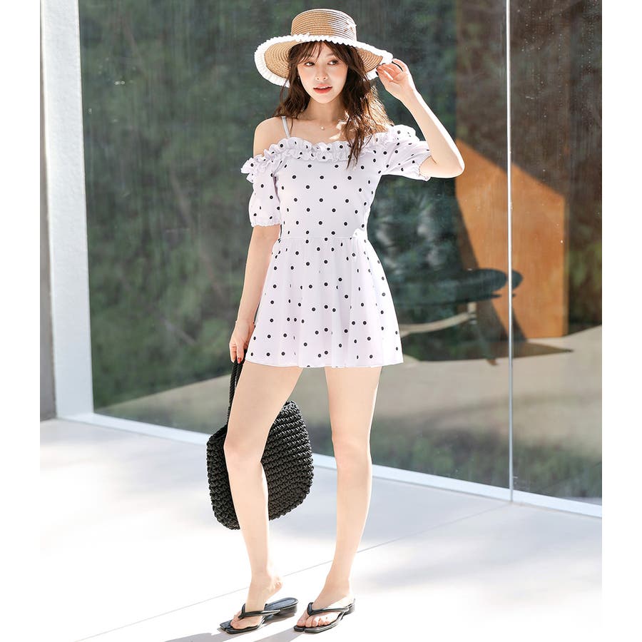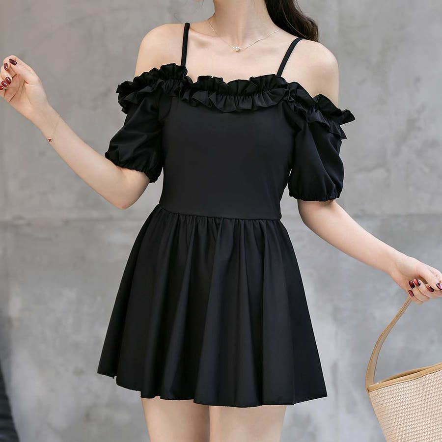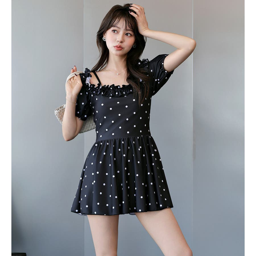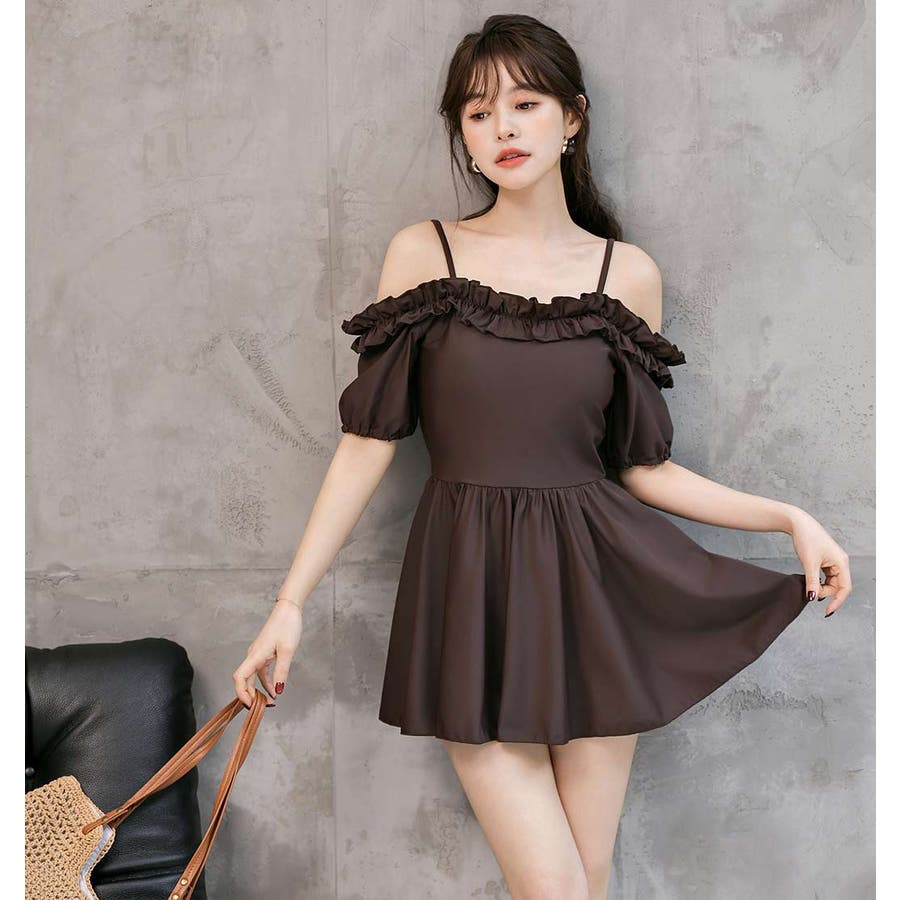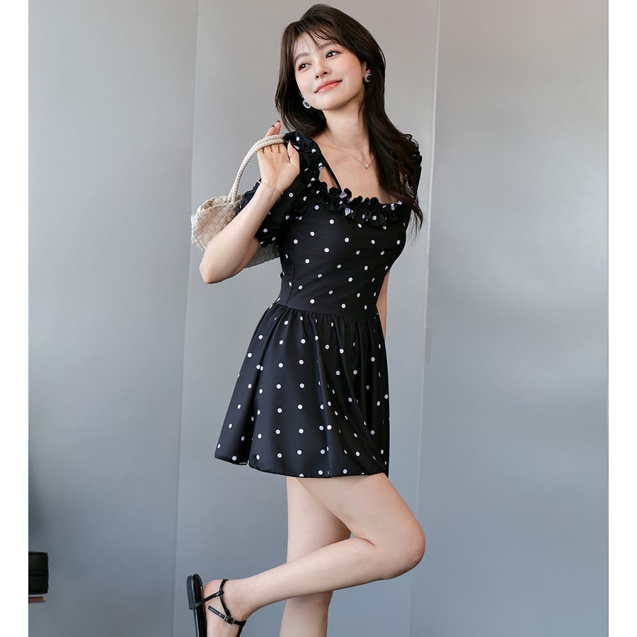 ビーチやプールでも映える大人フェミニンな2点セットフリルワンピ水着