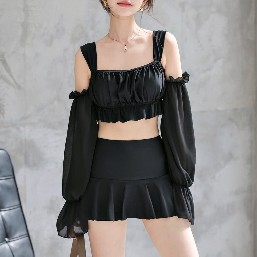 シアー&フリルでガーリーな印象になる2点セット水着