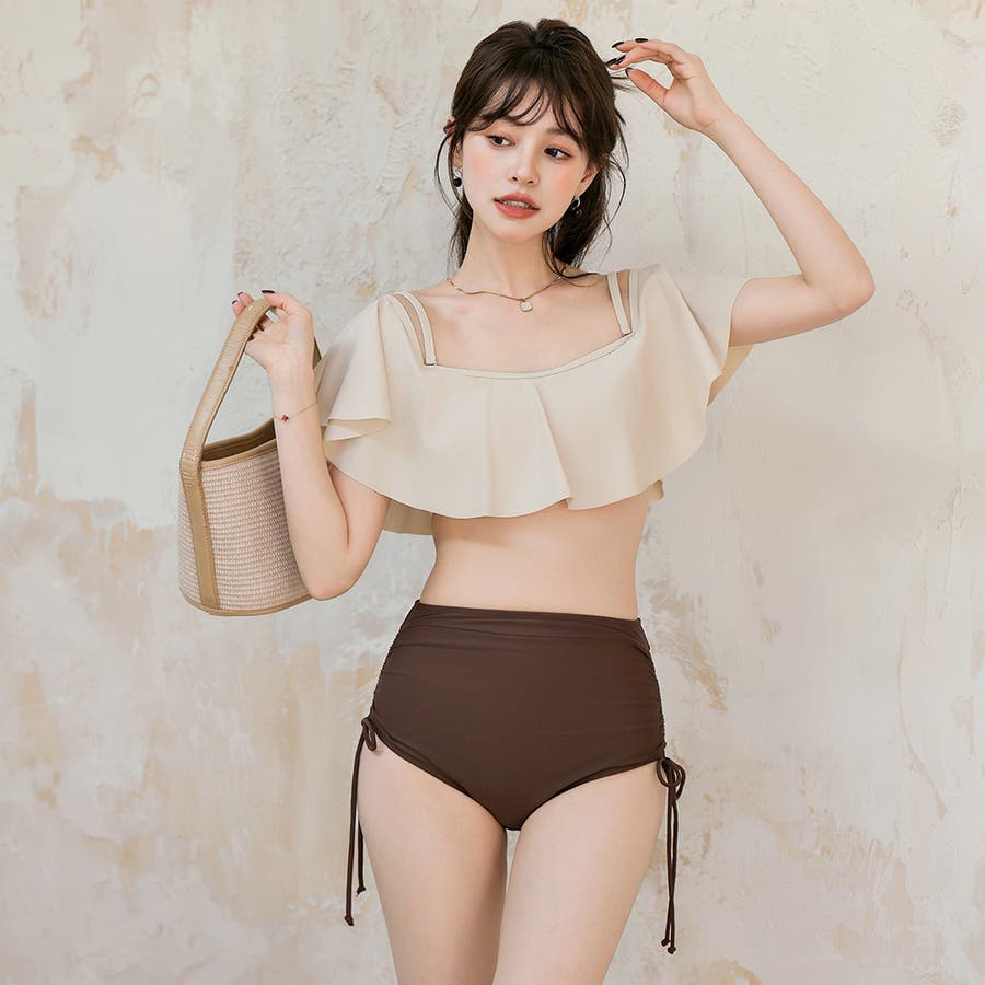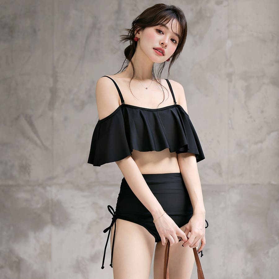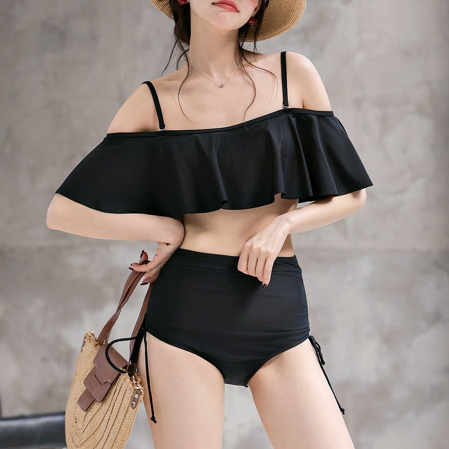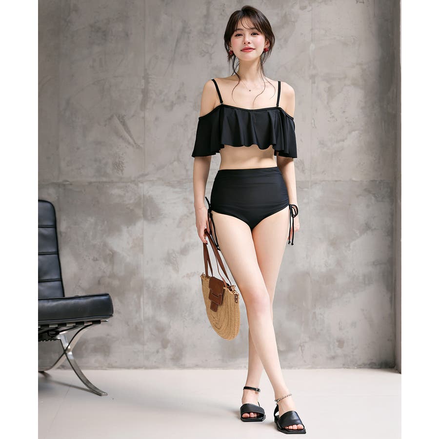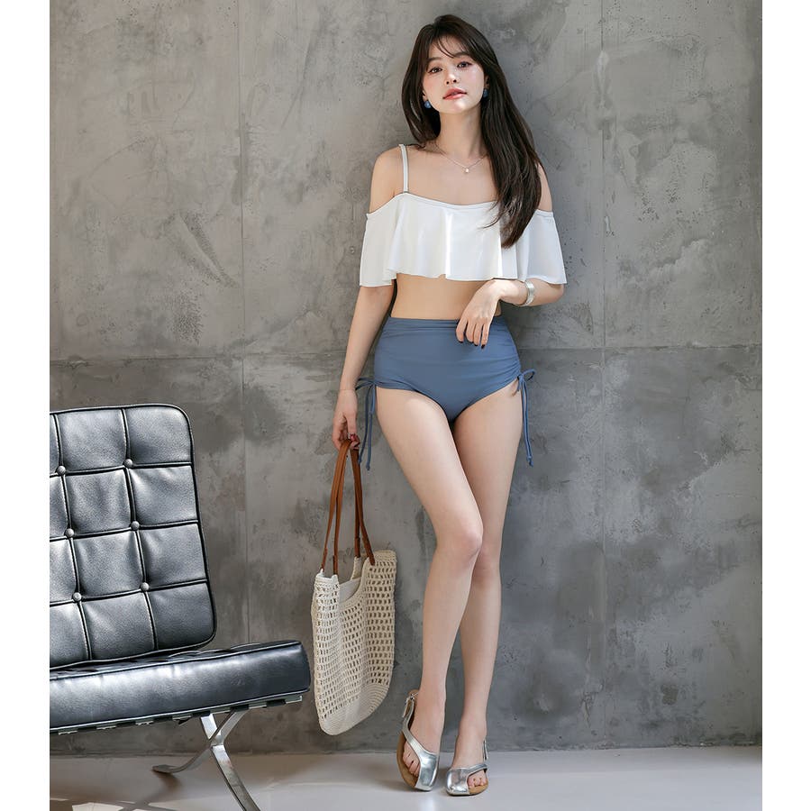 肩を隠して着用もでき、2wayで楽しめるオフショルビキニ。