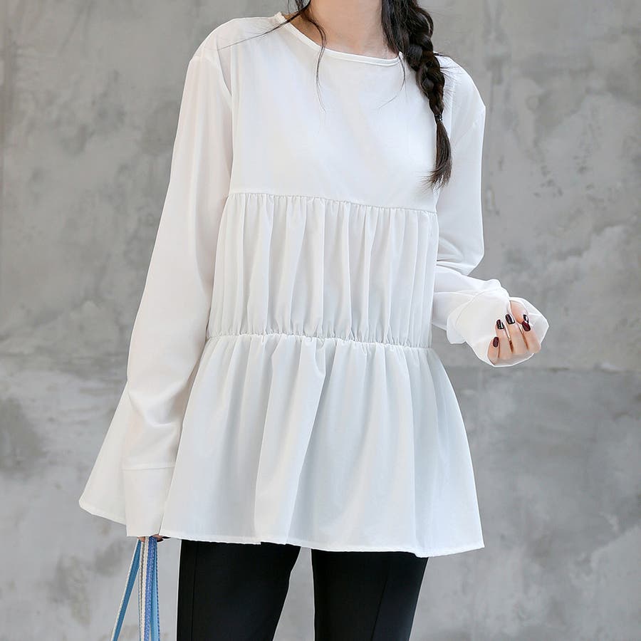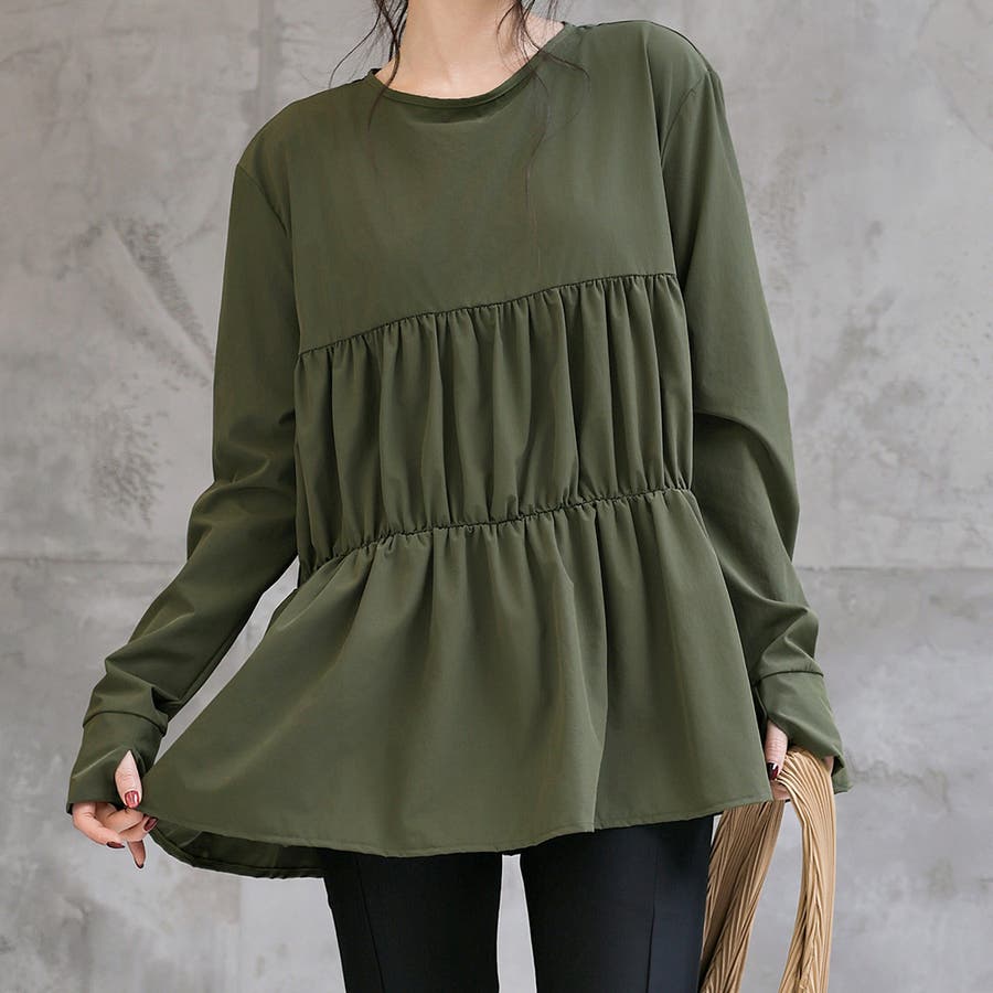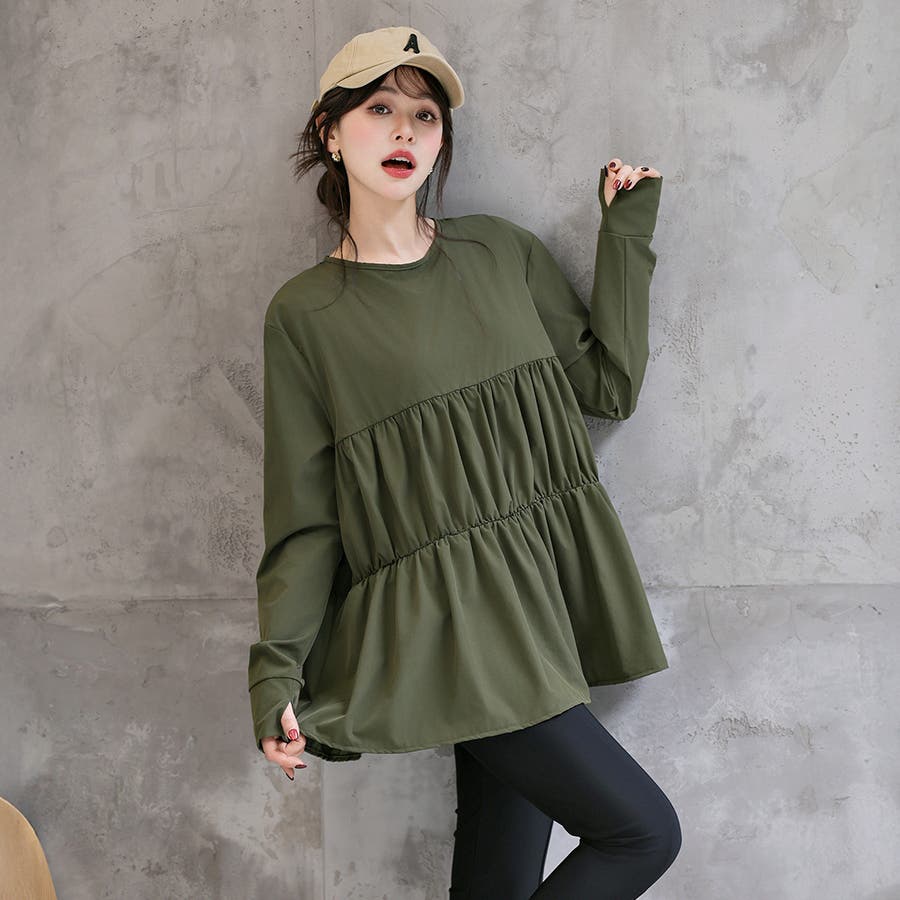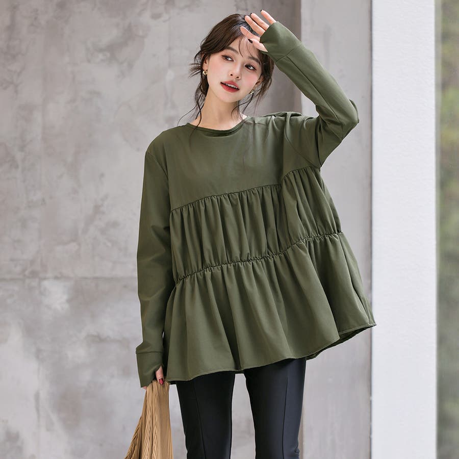 程良くゆとりのある袖とお尻まで隠れる丈感で自然に可愛く体型カバーが出来ます◎