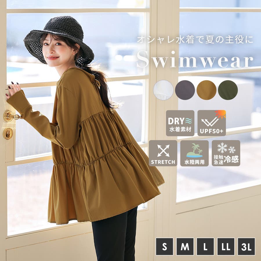 控えめティアードが大人フェミニンなパッド付き長袖水着。