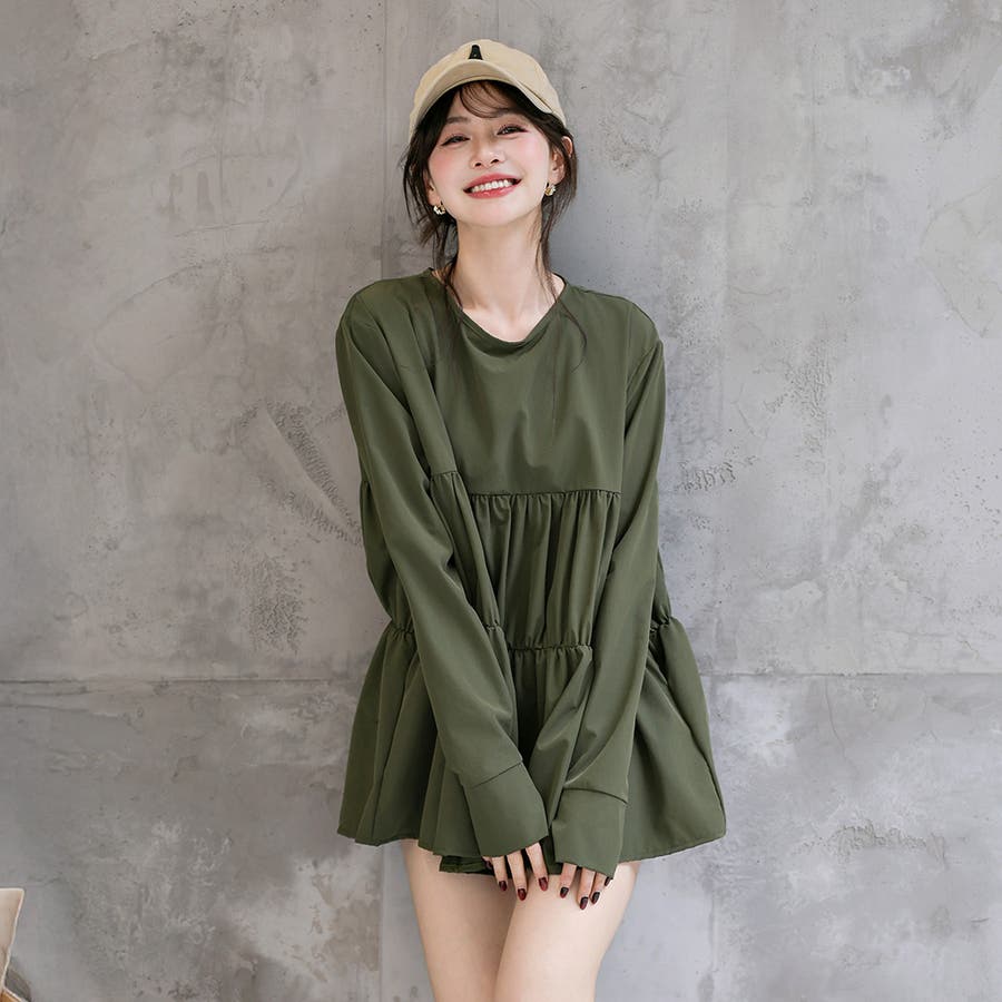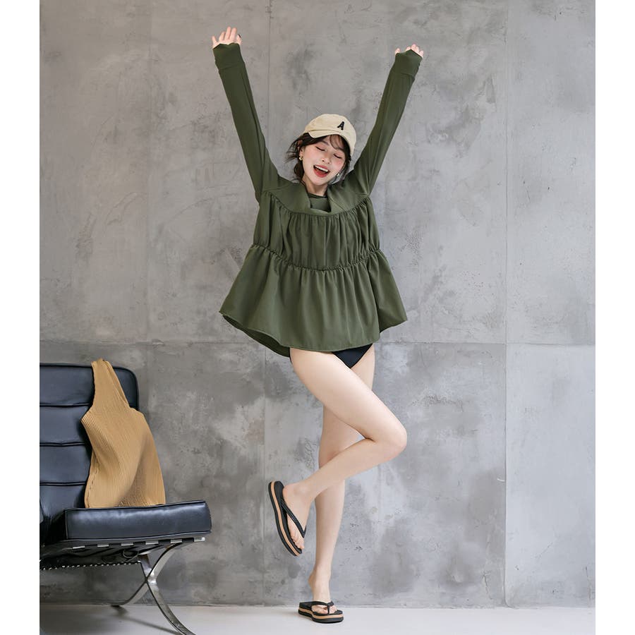 一枚さらっと着るだけでOKのブラ一体型長袖ティアード水着。