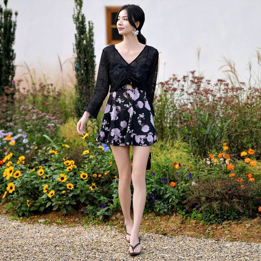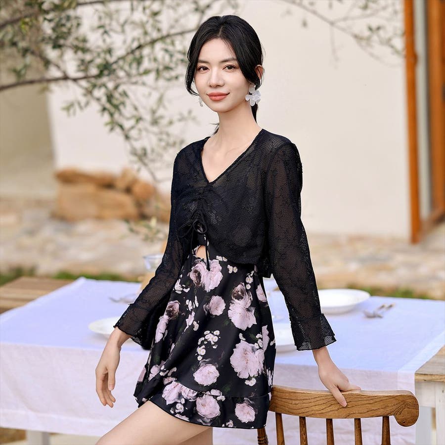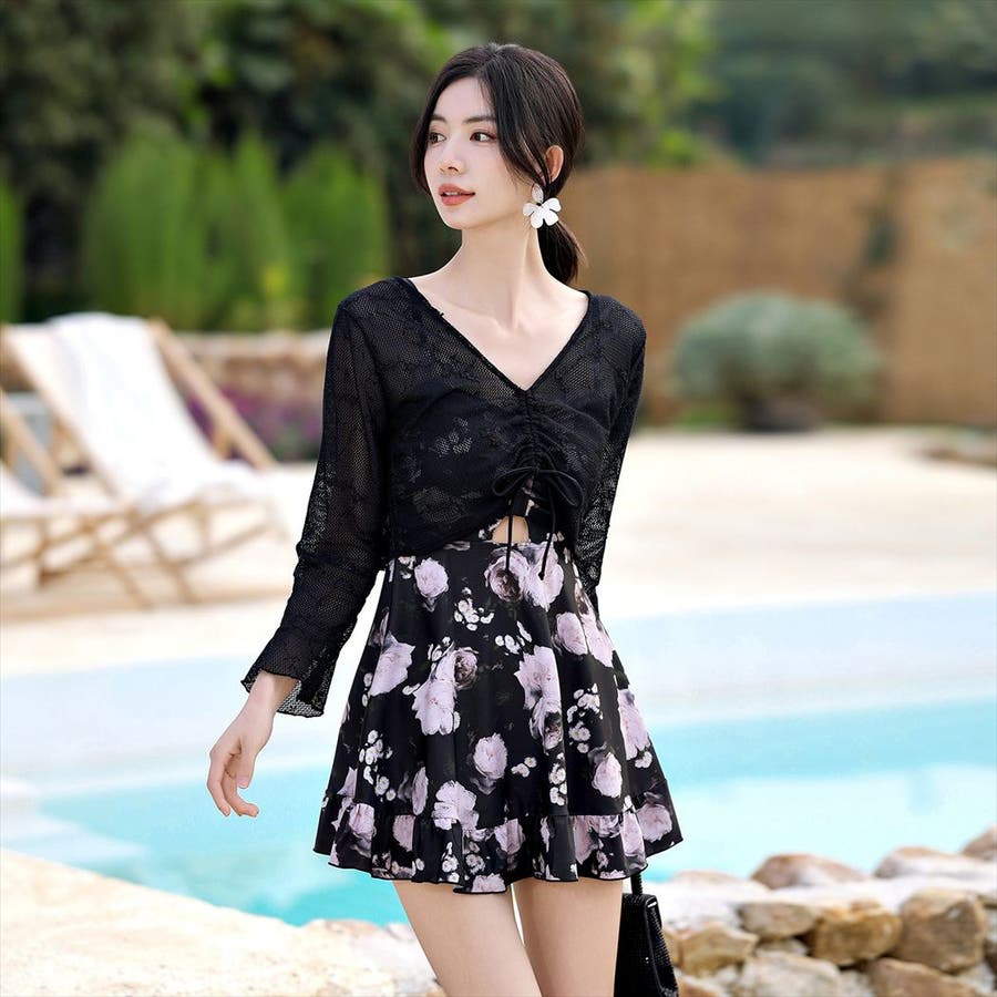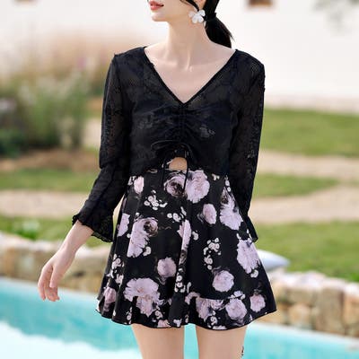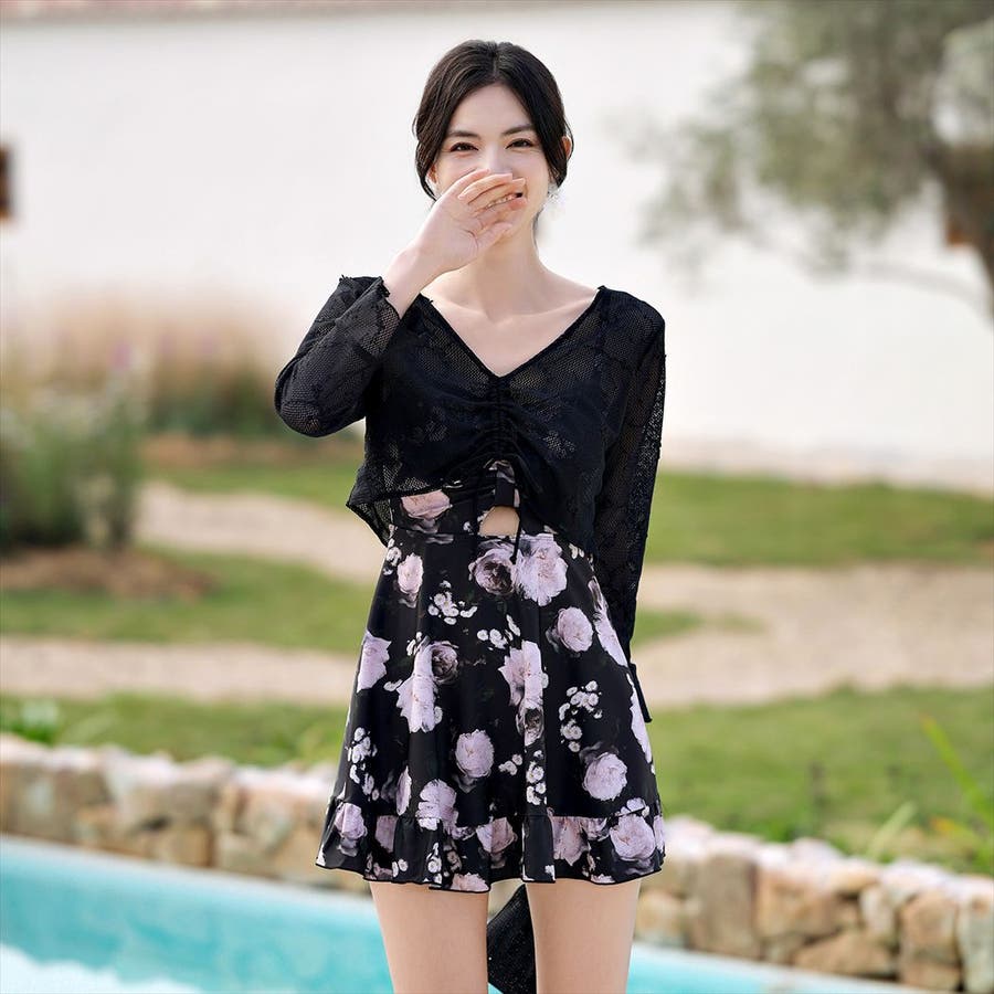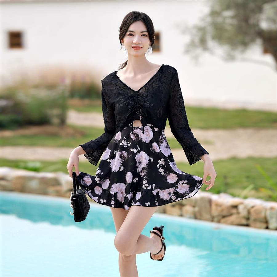 水着体型カバー ワンピース 花柄