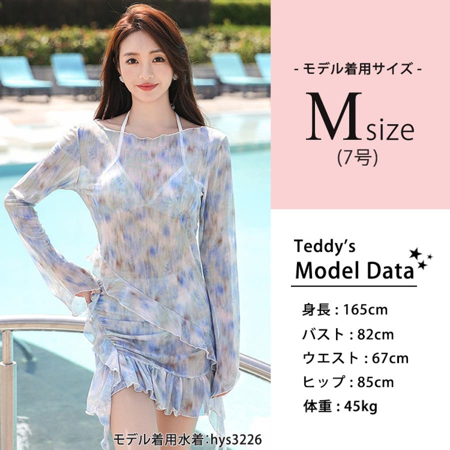 フレアな透け感長袖トップスとちょっぴりタイトなスカートが大人っぽい4点セット水着。