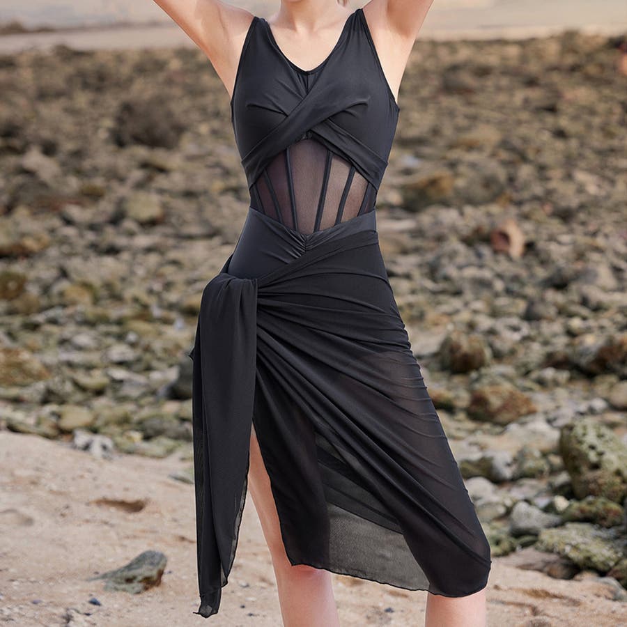 大人っぽくキマるパレオとワンピース水着の2点セット水着