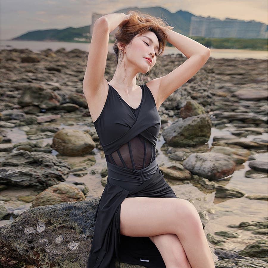 露出控えめでヘルシーな肌見せができるオールインワン水着