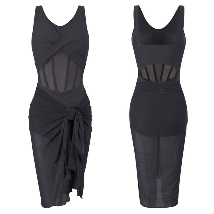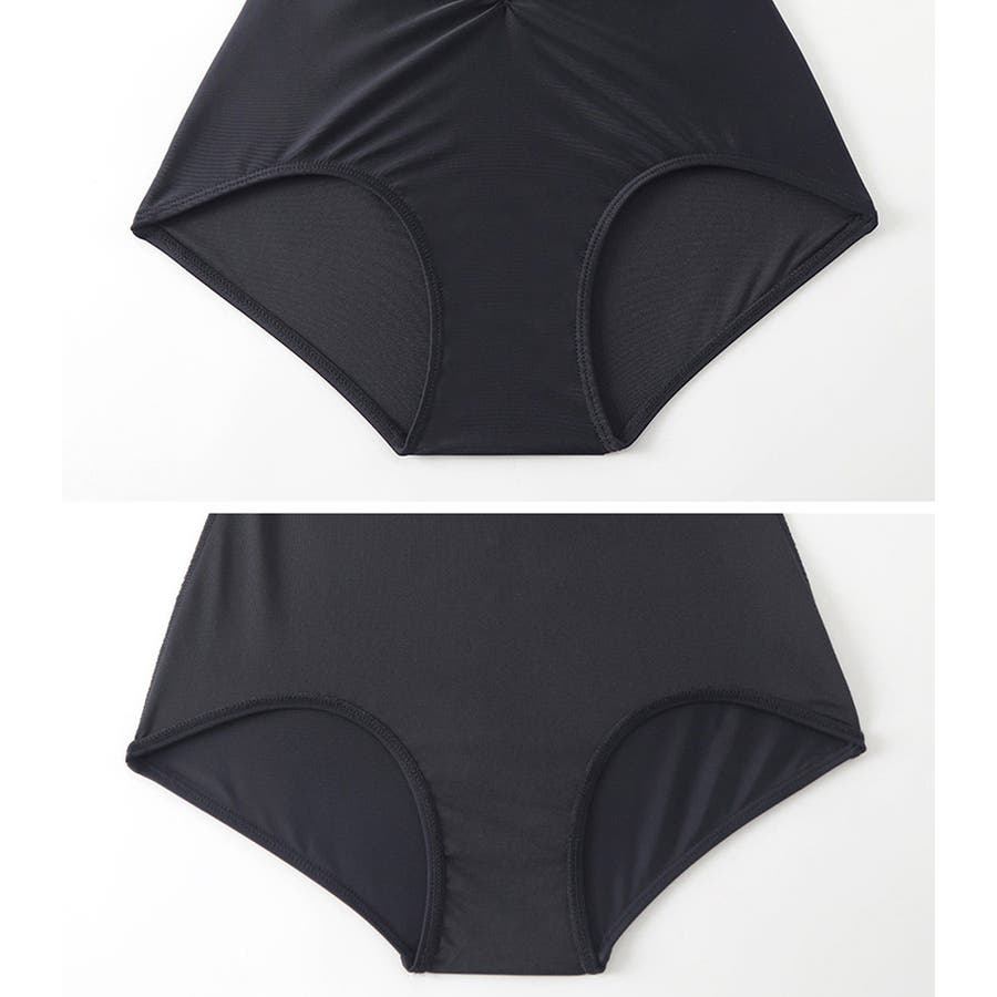 ウエストラインは透け感のあるメッシュ&ライン入りですっきりとしたシルエットに。