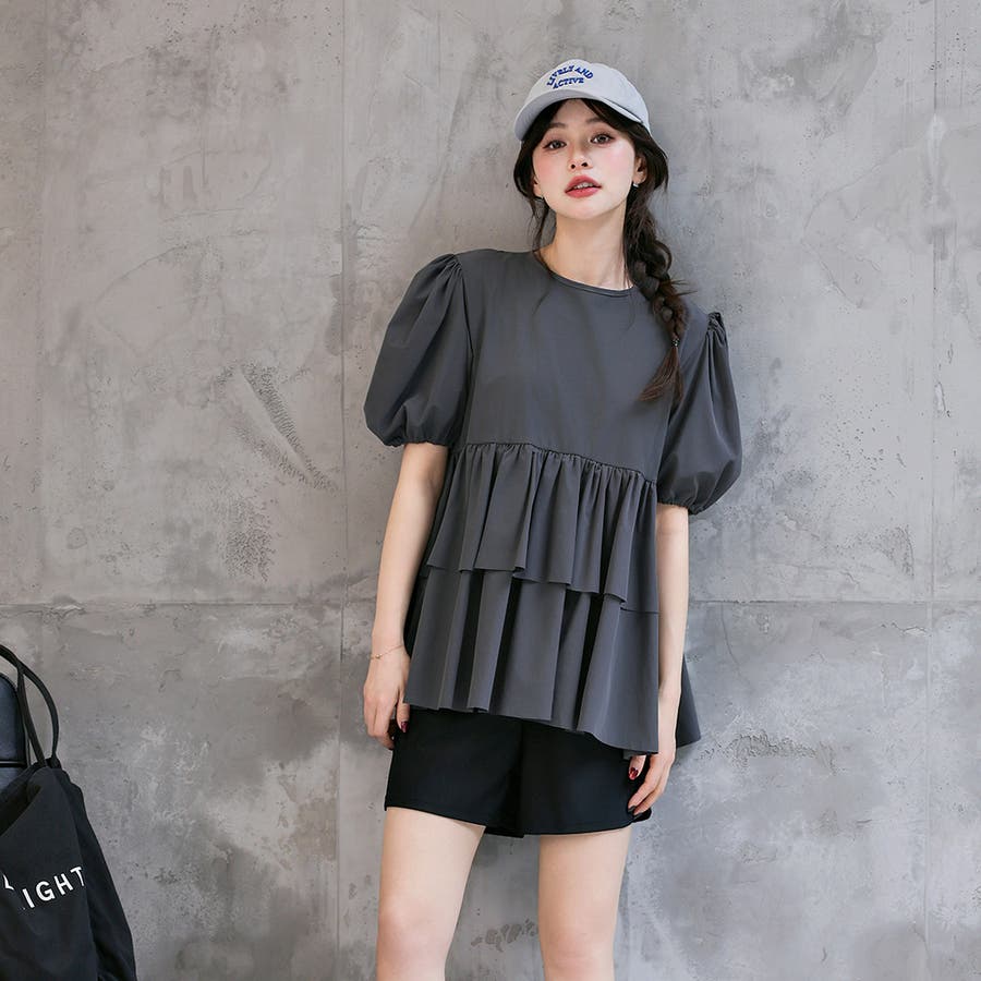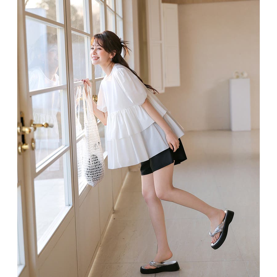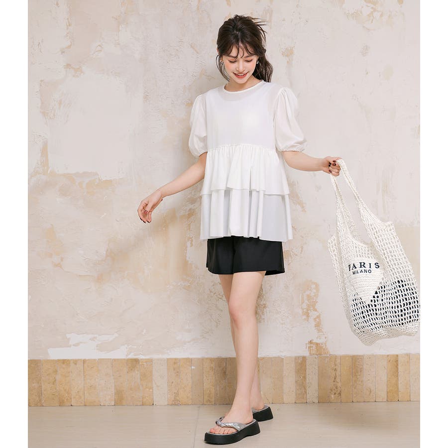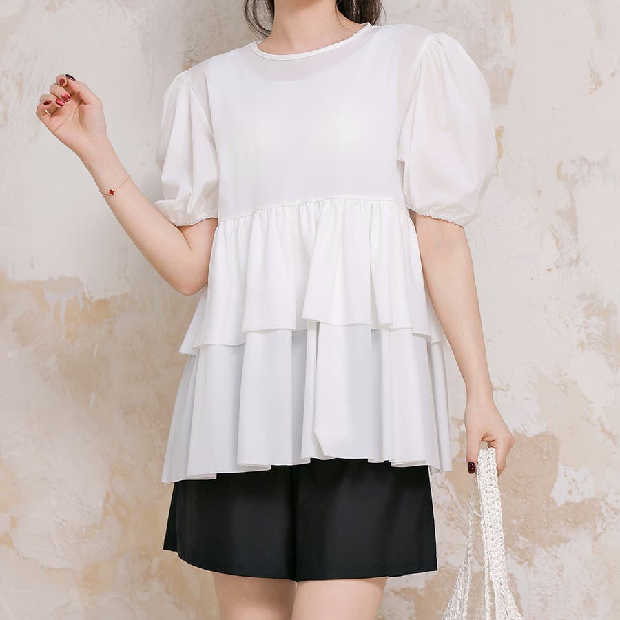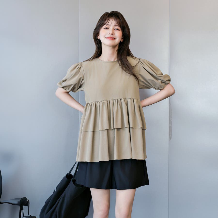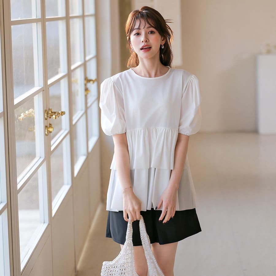 大人ガーリーに二の腕カバーが出来るパフスリーブと