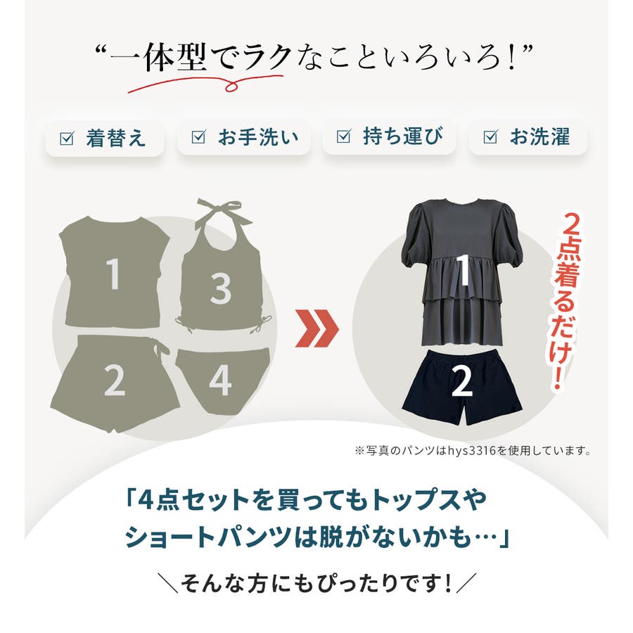 中に水着を着なくてもOKで楽な着心地のブラー体型トップス。