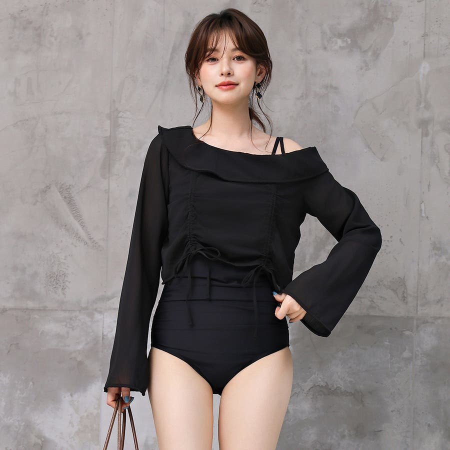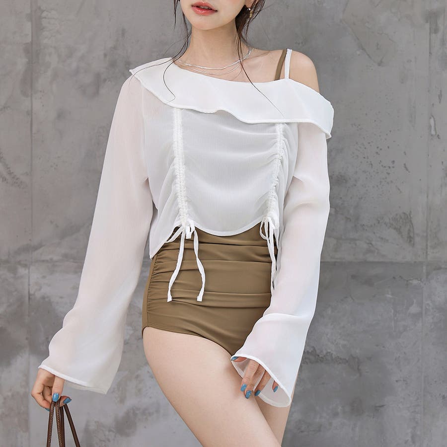 胸元とウエスト両サイドはギャザーでメリハリが出せる◎