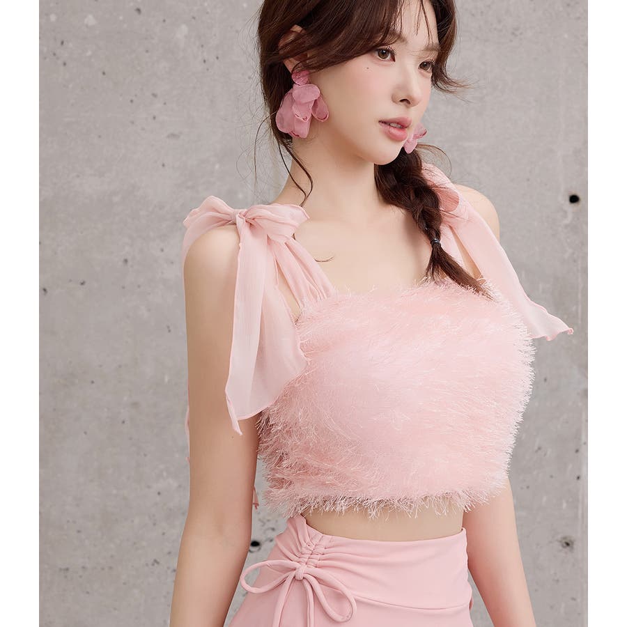 肩紐チュールを結び直して長さ調節が可能。