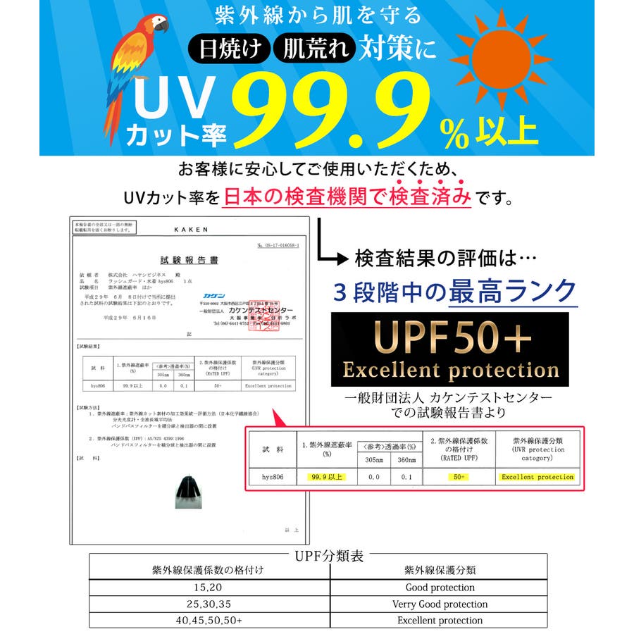 お客様に安心してご使用いただくため、UVカット率を日本の検査機関で検査済みです。