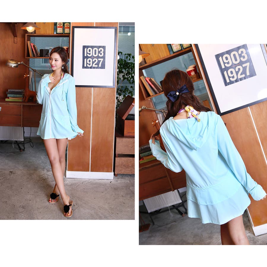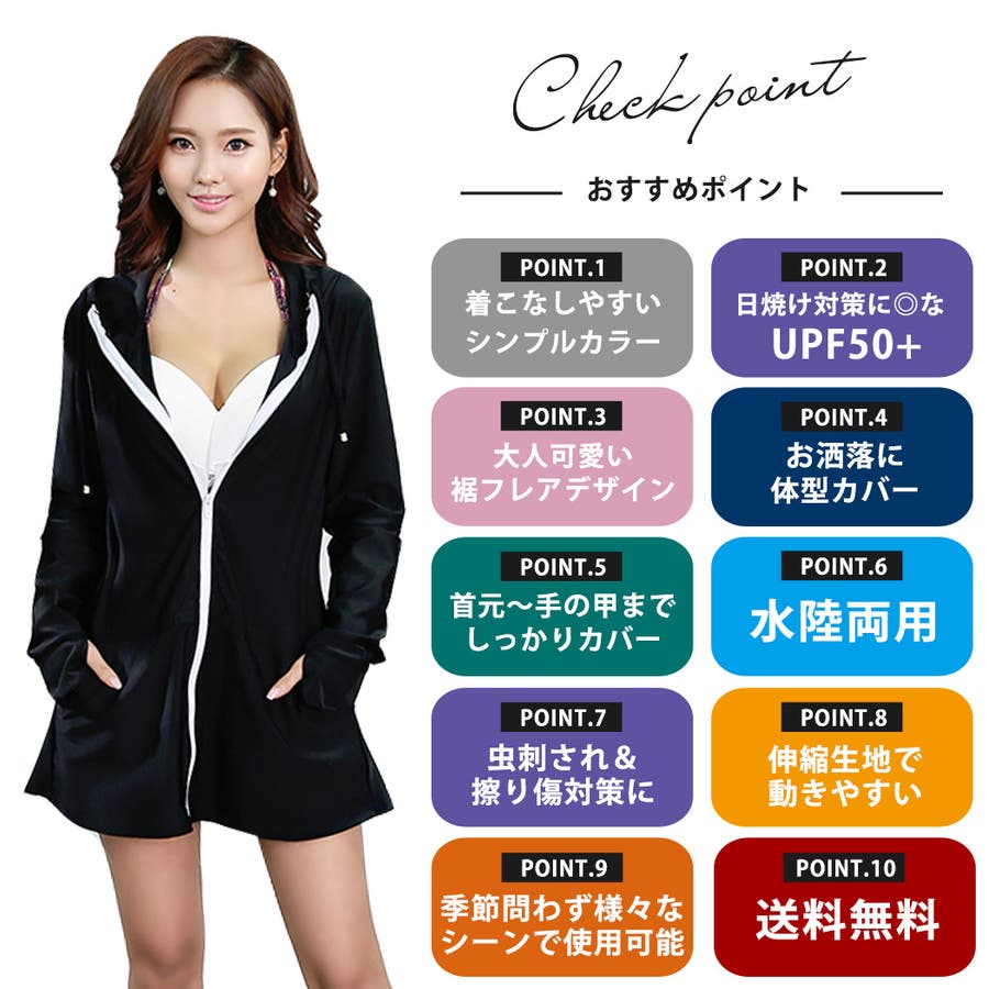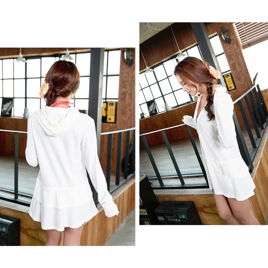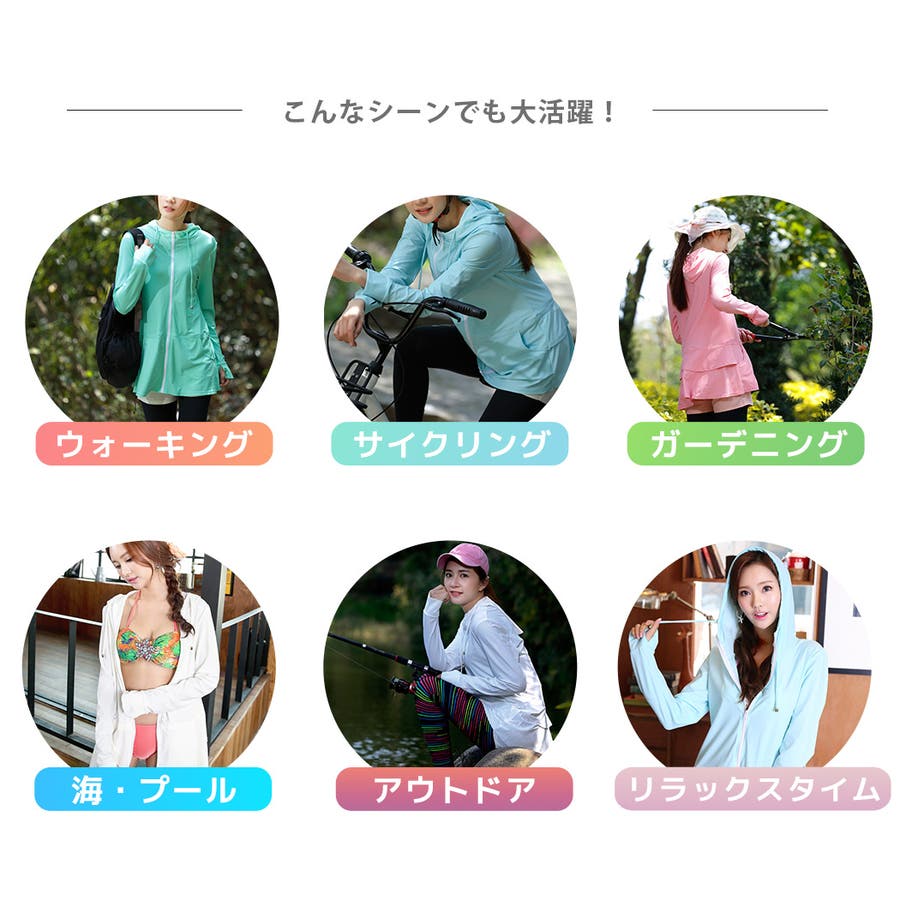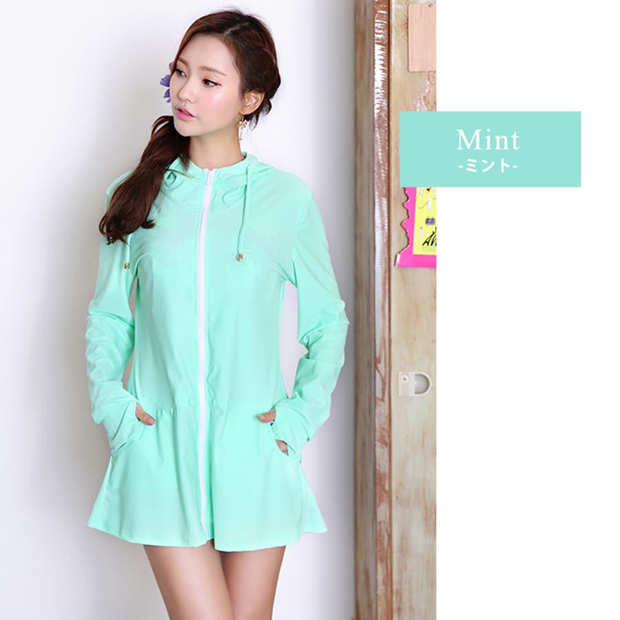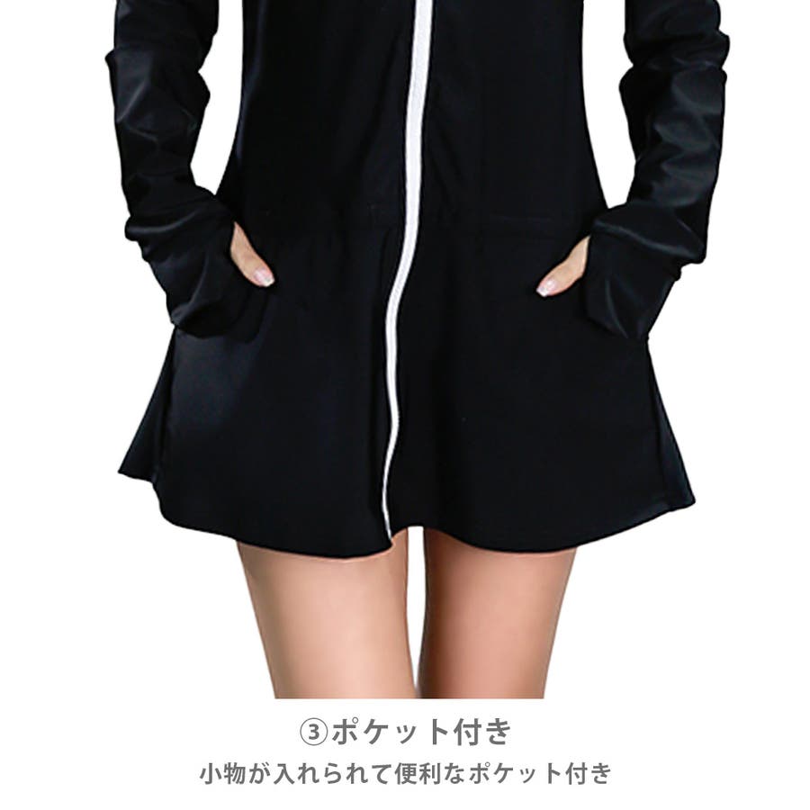 白は少しだけ透け感がありますが、VUカットで伸縮性もあり、後ろのフリルと手の甲までカバーできるデザインがすごくいいです。