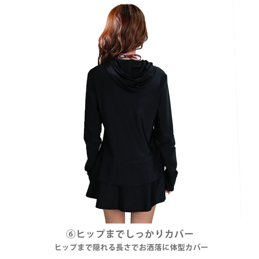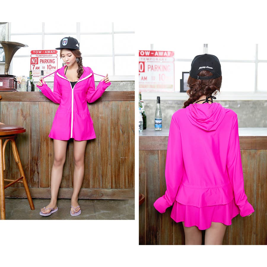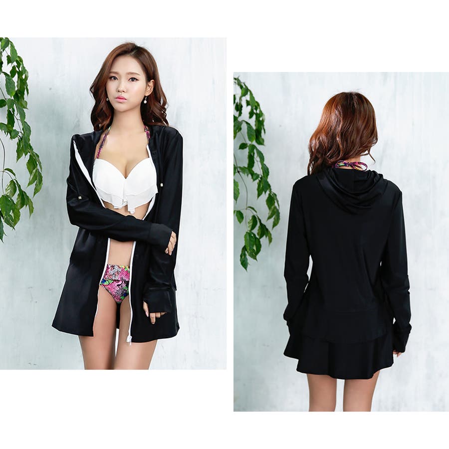 裾のフリルっぽいところがすごくかわいいです。スリムなデザインだったのでゆるめのLサイズを購入しましたが、水着の生地と同じですごく伸縮性があるのでとても動きやすいです。