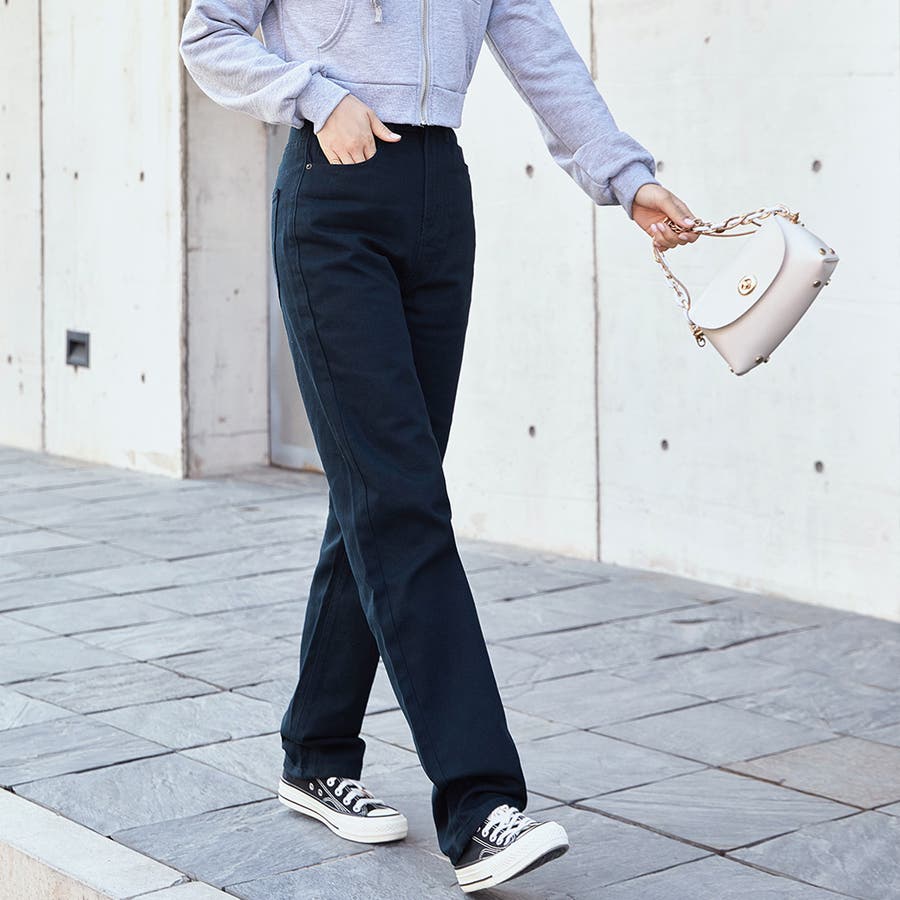 ハイウエストで目線を上げて脚をスラっと魅せスタイルアップ