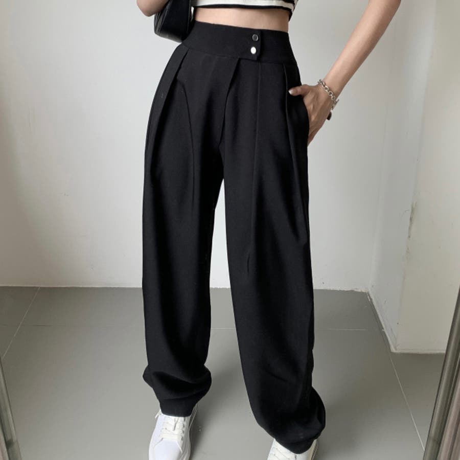 レディース ハイウエストタックパンツ