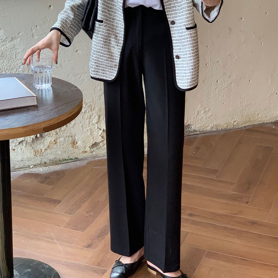 ストレートのシルエットで脚をスラっと見せてくれます。