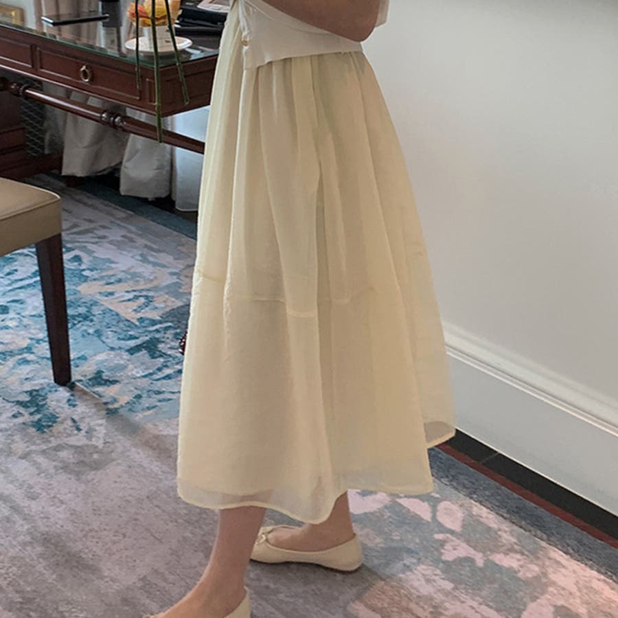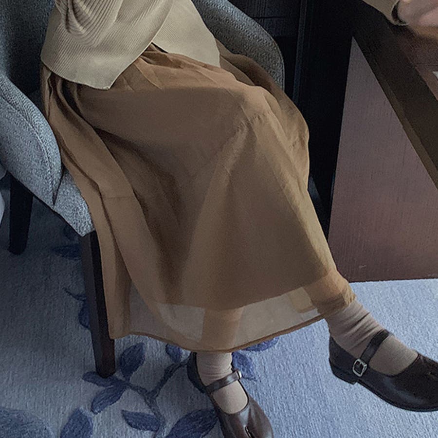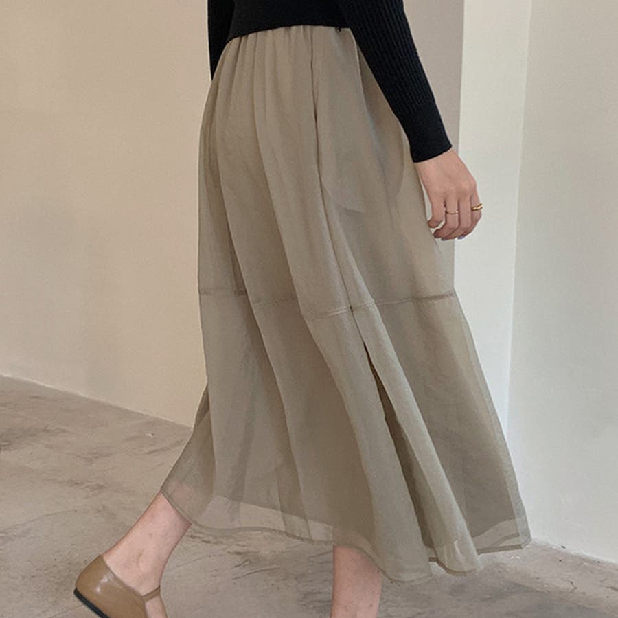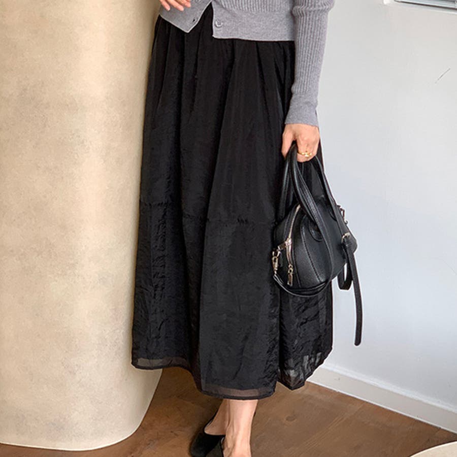 表地のオーガンジー生地にほんのり光沢があるシンプルなスカート。