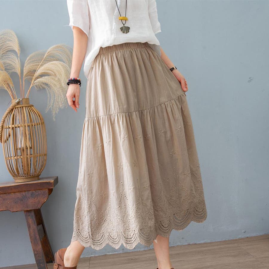 綿素材、肌触りが良いです。レースも可愛く夏にピッタリのスカート。ウェストがゴムだったので緩いですが、履けます。