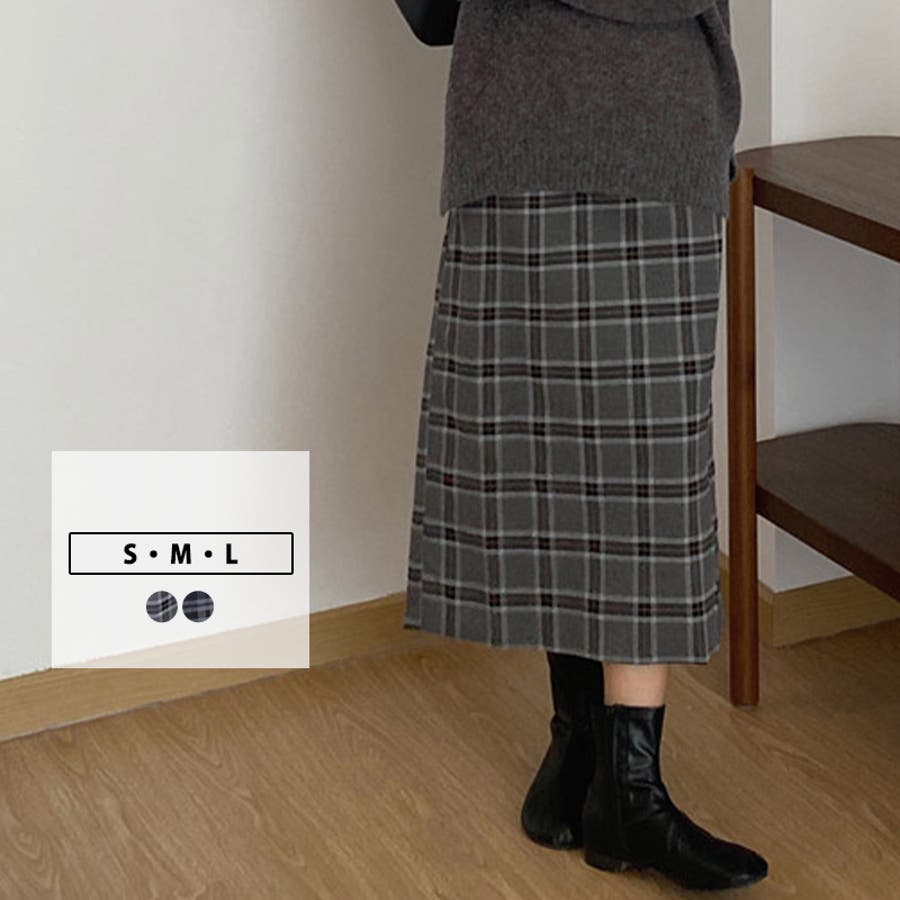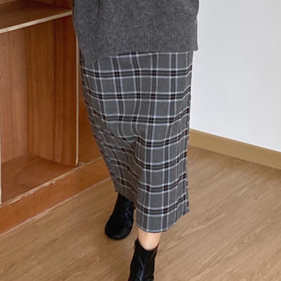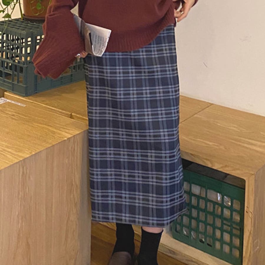 チェック柄ミモレ丈スカート