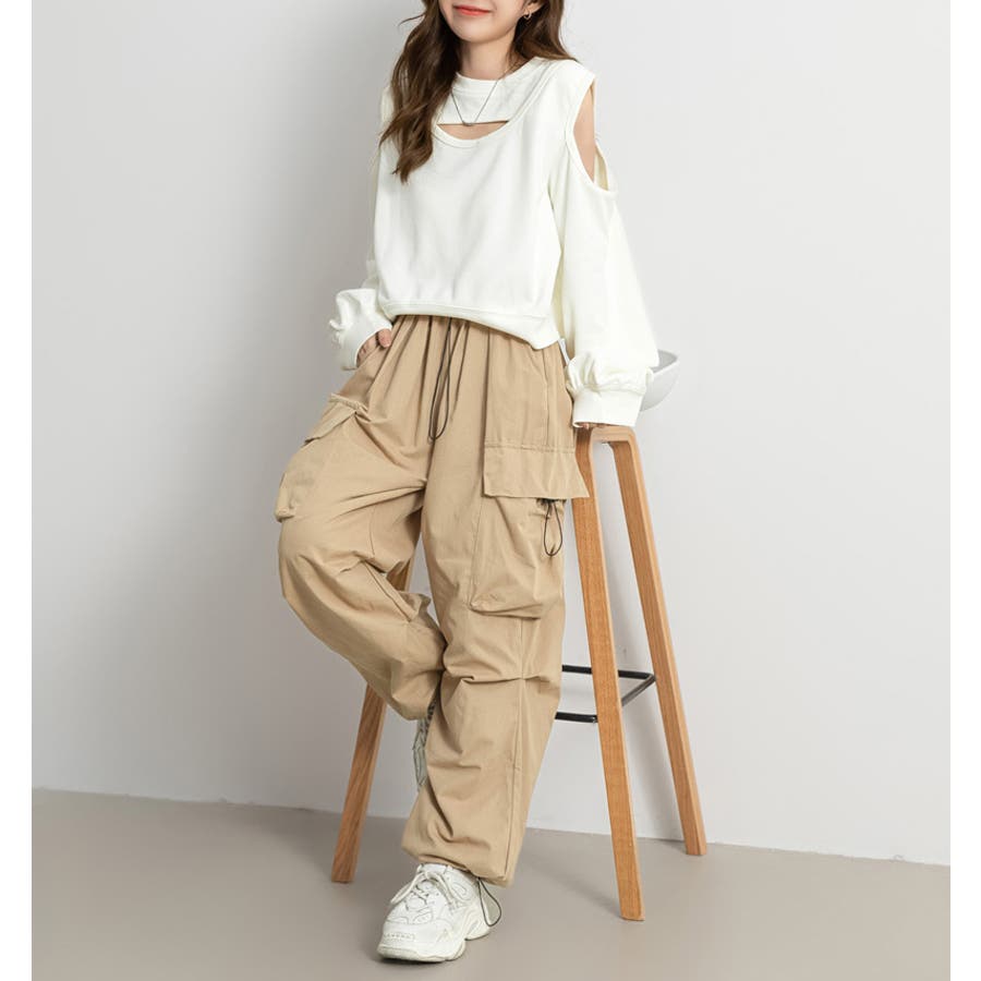 ダボッとしたカーゴパンツが欲しくて購入しましたが、サイズが思っていたよりも大きかったです。生地は厚めで、夏に履くには少し暑いと思います。