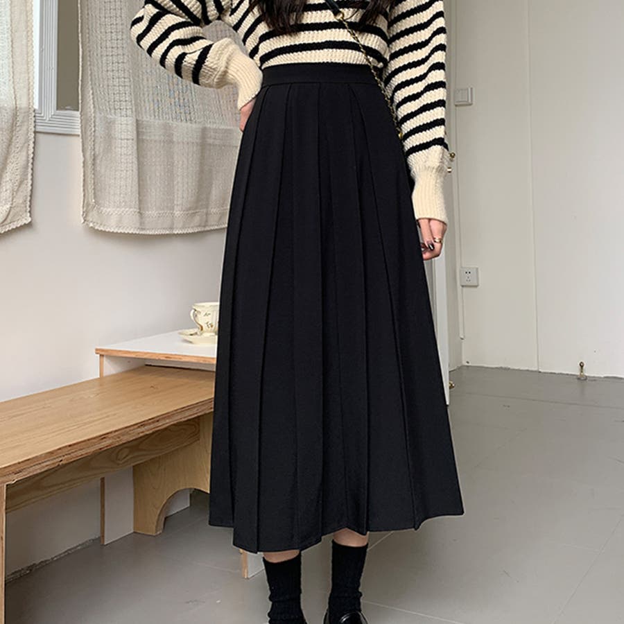 脚のラインが気にならないシルエットが綺麗なAラインのプリーツスカート。