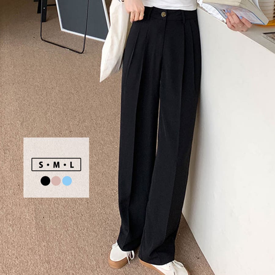 幅広いコーデがしやすいスラックスパンツ。